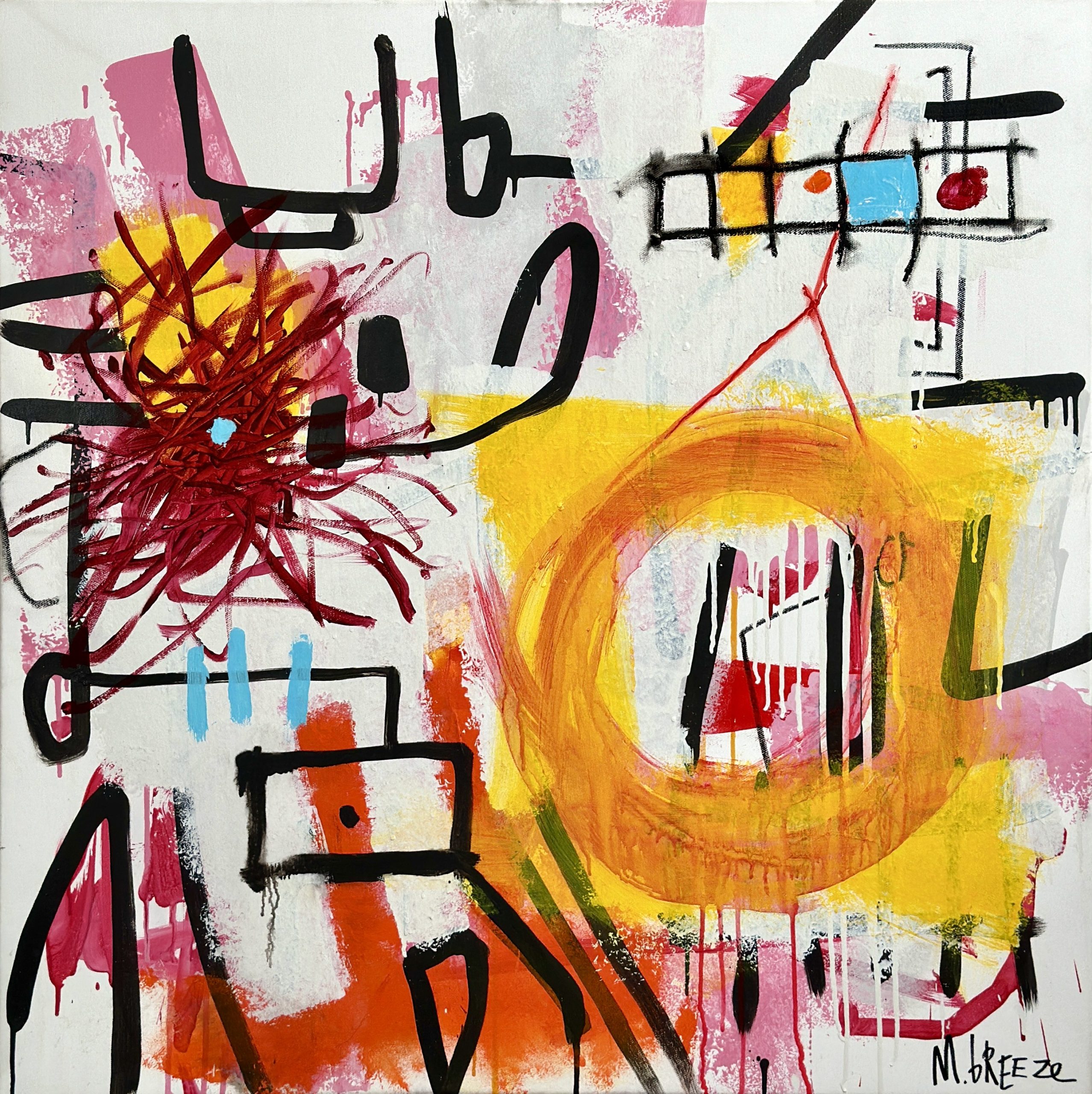 Ball of Confusion adopts a simplistic palette where layers intertwine, creating highlights and depth to give this piece a sense of journey and movement.