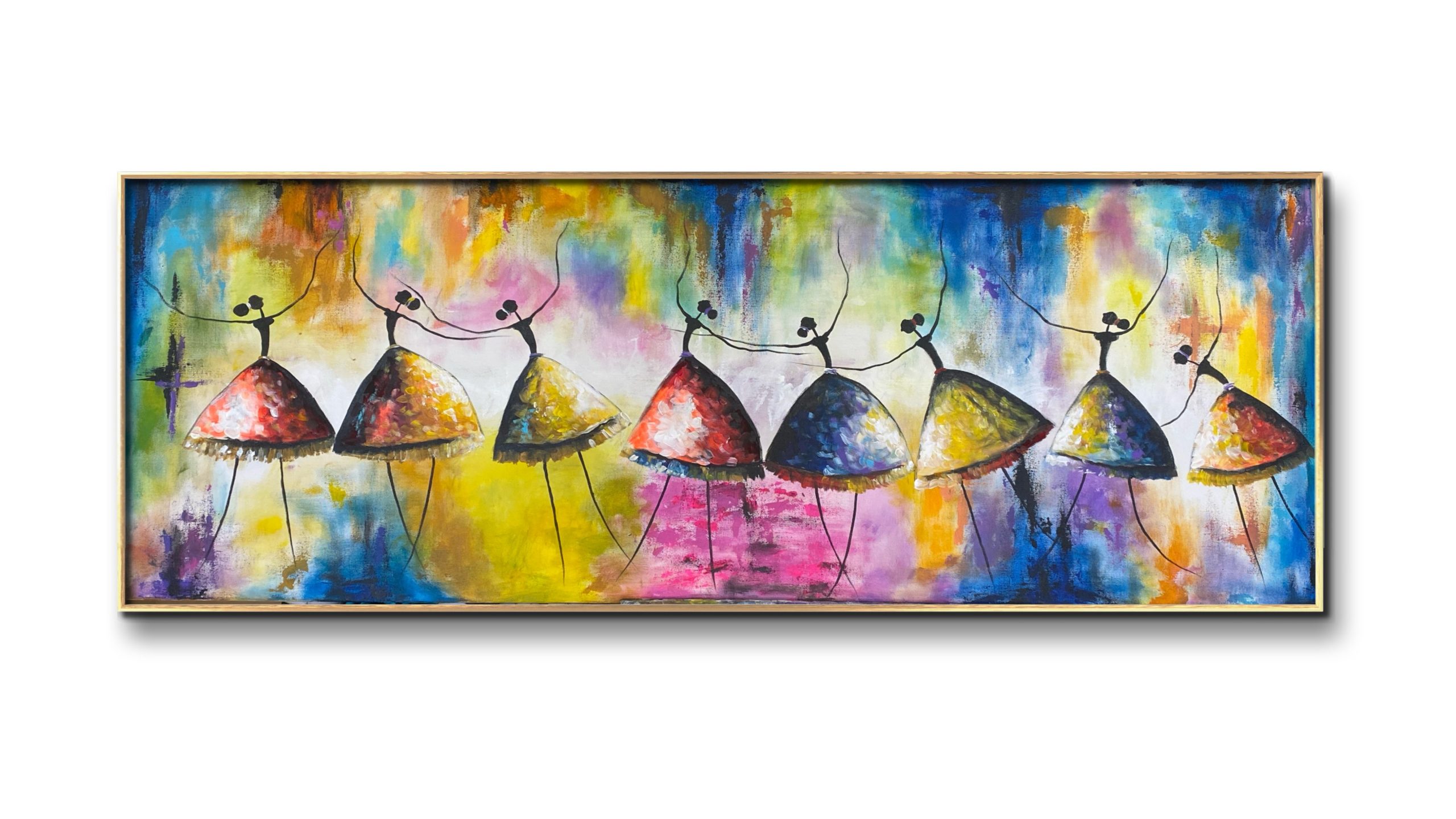 Ballerina by Mahesh Aluthge – The abstract dancing girls with Spectacular bright colors on the frocks and vibrant bright colors in the background suits for any walls because of the spectrum of the warm and cool color combinations. This beautiful piece will add lot of vibes to any space of any home.