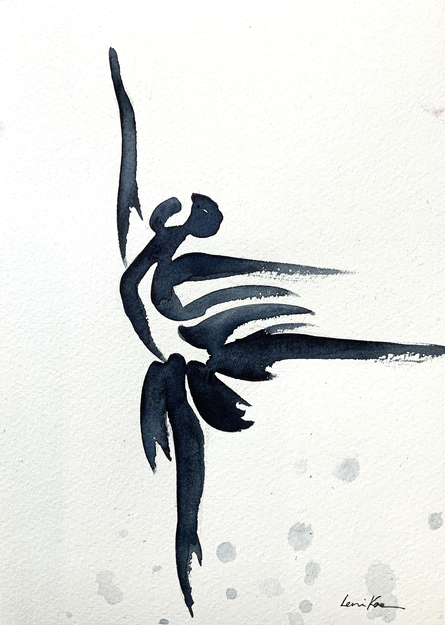 A minimalist sumi-e style artwork of a ballet dancer, by Sydney artist Leni Kae. An elegant small artwork, celebrating the joy of dance and ballet. A beautiful small addition to a salon-style hanging, or unique gift for a dancer or ballet-lover.