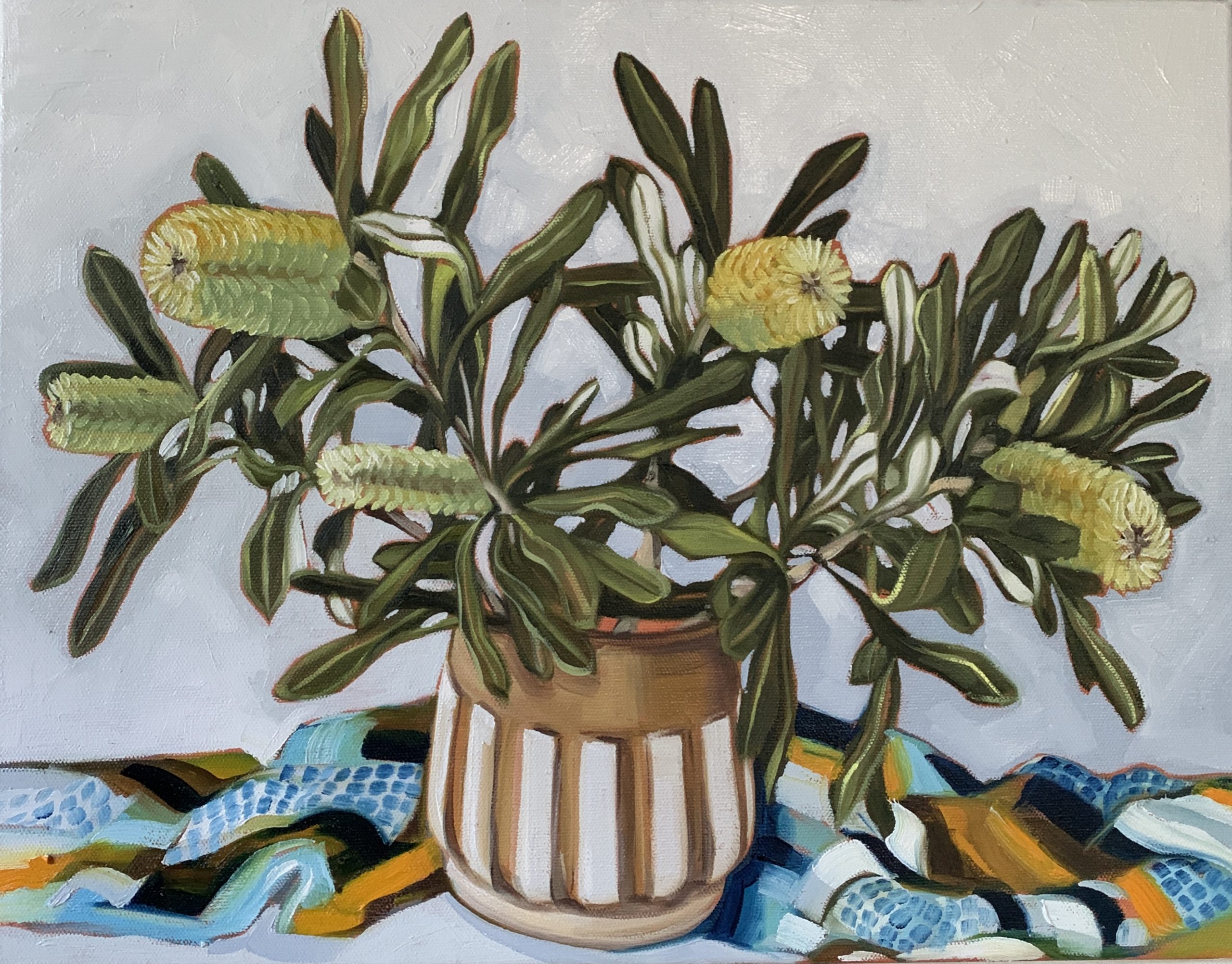 Waratah Banksias and the Blue Geo Vase