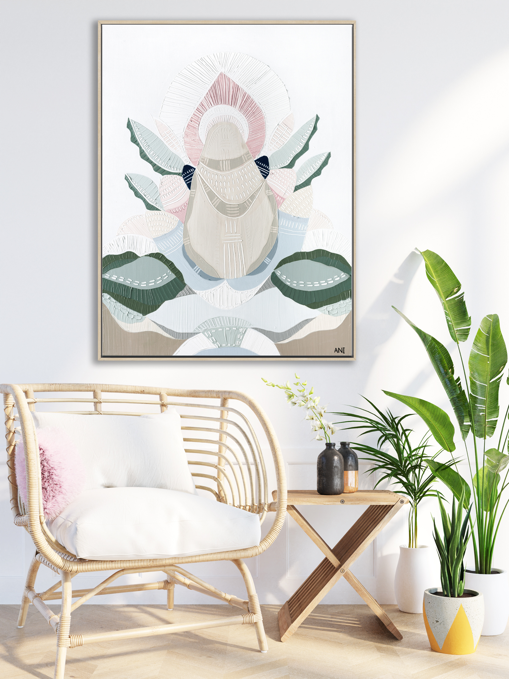 Painting is 78cm x 104cm comes framed in the colour of your choice