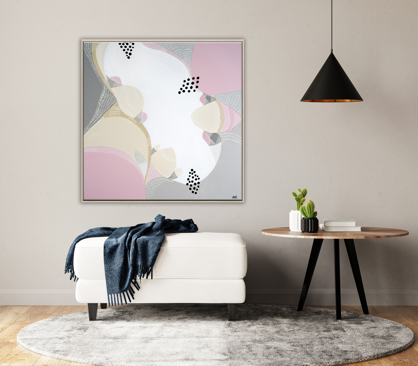 Ani Ipradjian, a Melbourne-based artist, is known for her unique asymmetrical abstract style inspired by nature and cityscapes. Her work, featuring luscious textures and vibrant colors, captures Australia’s native flora and landscapes. With a Diploma in Art and Design, Graphic Design, and Photography, Ani combines acrylic painting with mixed media. She predominantly uses soft pinks, calming blues, and warm mustards. Ani’s art brings any room to life.