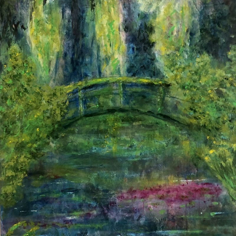 Meredith paints with either acrylic or oil paint on gallery wrapped stretched canvas.