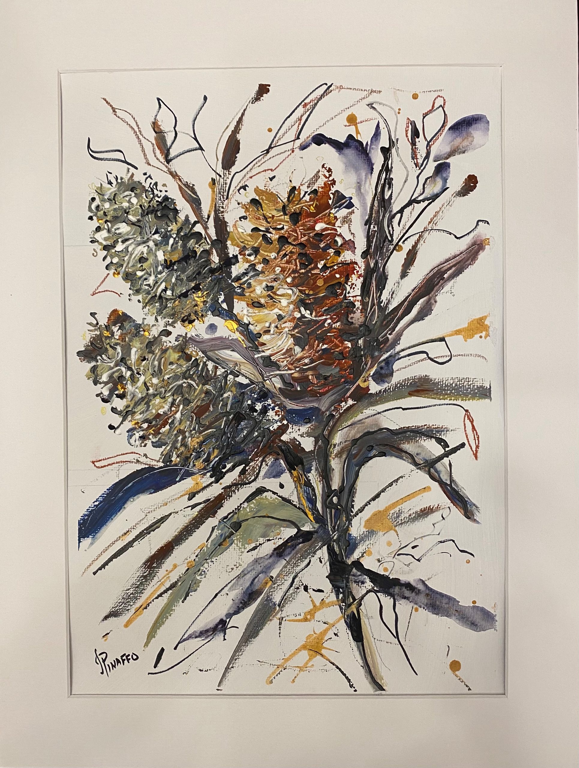 Banksias are so full of interest in the different colors and texture. I used my artistic licence to introduce different colors and textures to come up with the end result.