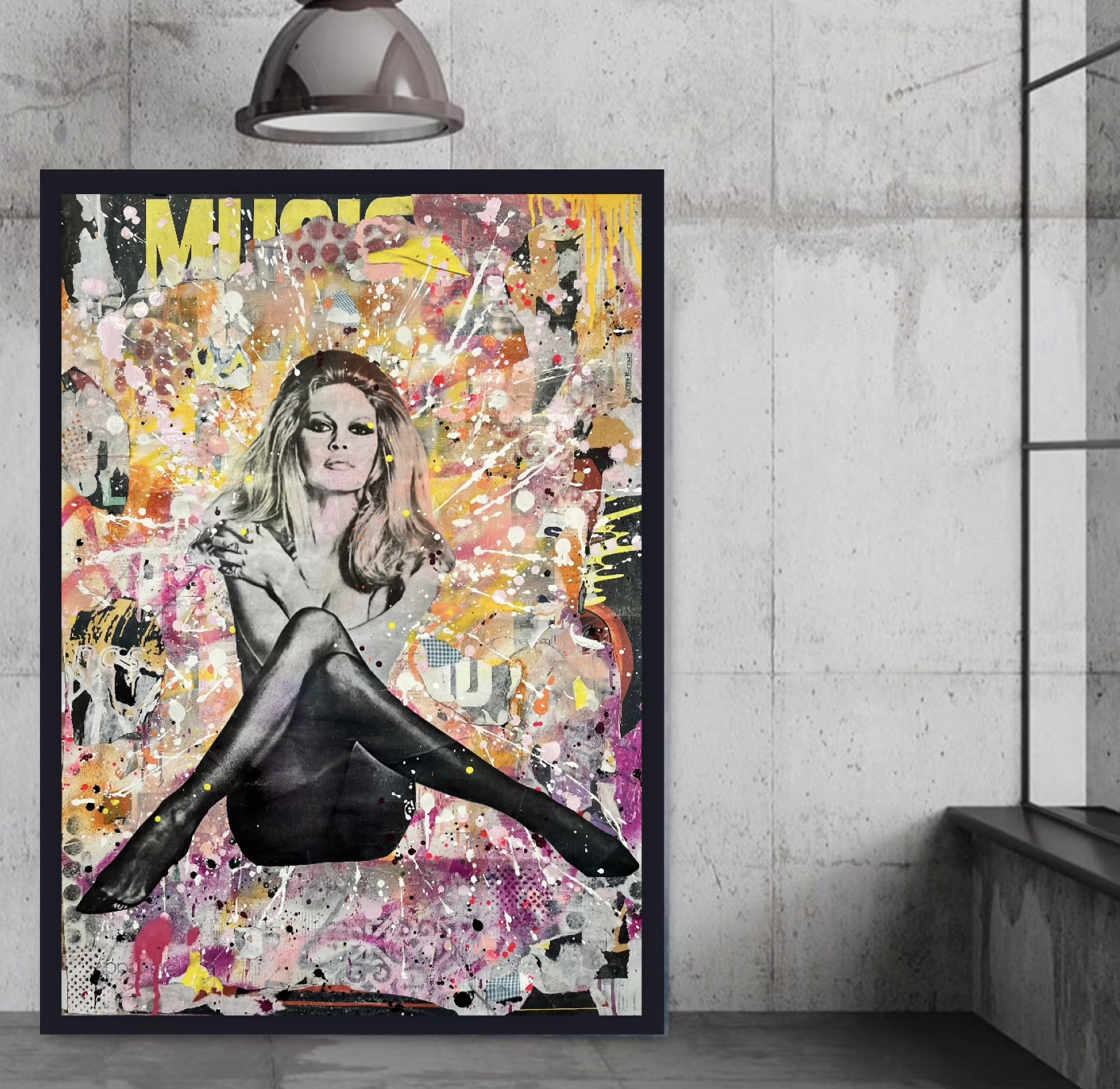 The main Iconic Bardot Image was then added and then further overlaid with lot of layers of paint and street posters to give a worn rustic appearance.