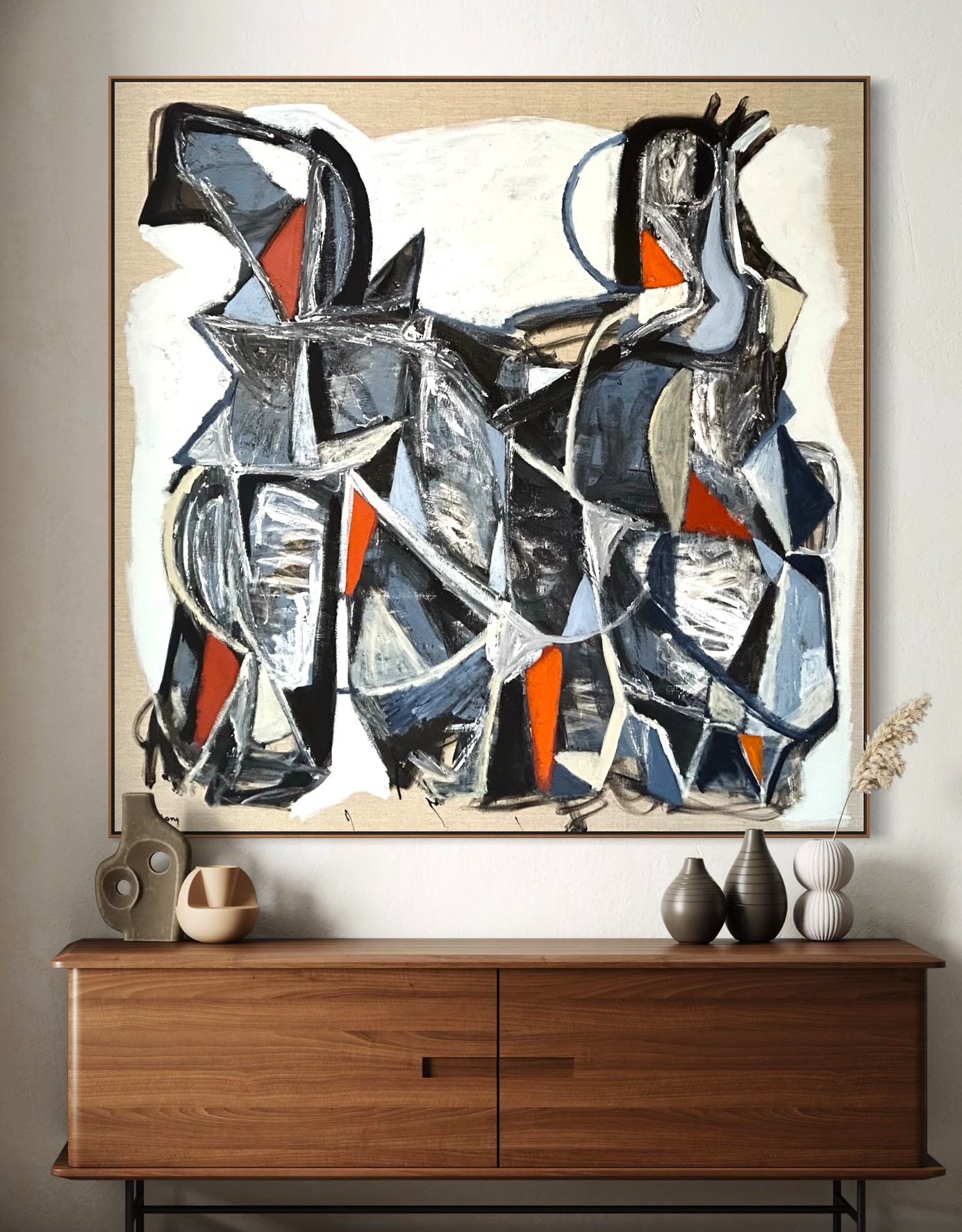 Battle For the Interior by Ann Needham (Joy Collection) is a modern expressionist painting about the opposing forces within the psyche—contending impulses, memories, emotional states and intellect. Battle for the Interior is painted on a beautiful gallery wrapped linen. This piece is signed on the front and accompanied by a certificate of authenticity. This large original painting is lightly spray varnished for protection, and only quality materials are used. Framing is optional. Battle for the Interior will be professionally packaged and arrive to you ready to hang, shipping and insurance included.
