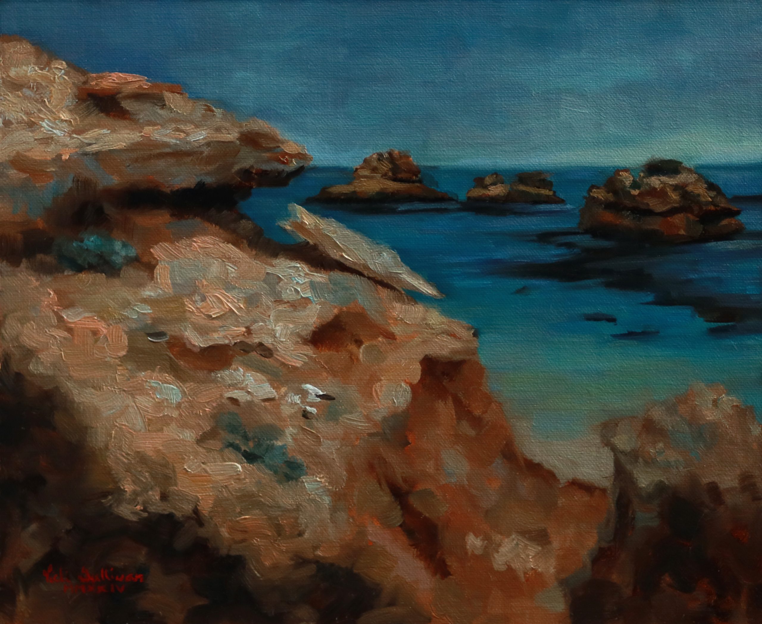 Bay of Islands Looking East, Plein Air painting by Vicki Sullivan – I love the way nature is always changing in the light. This painting was painted plein air, on the Mornington Peninsula.