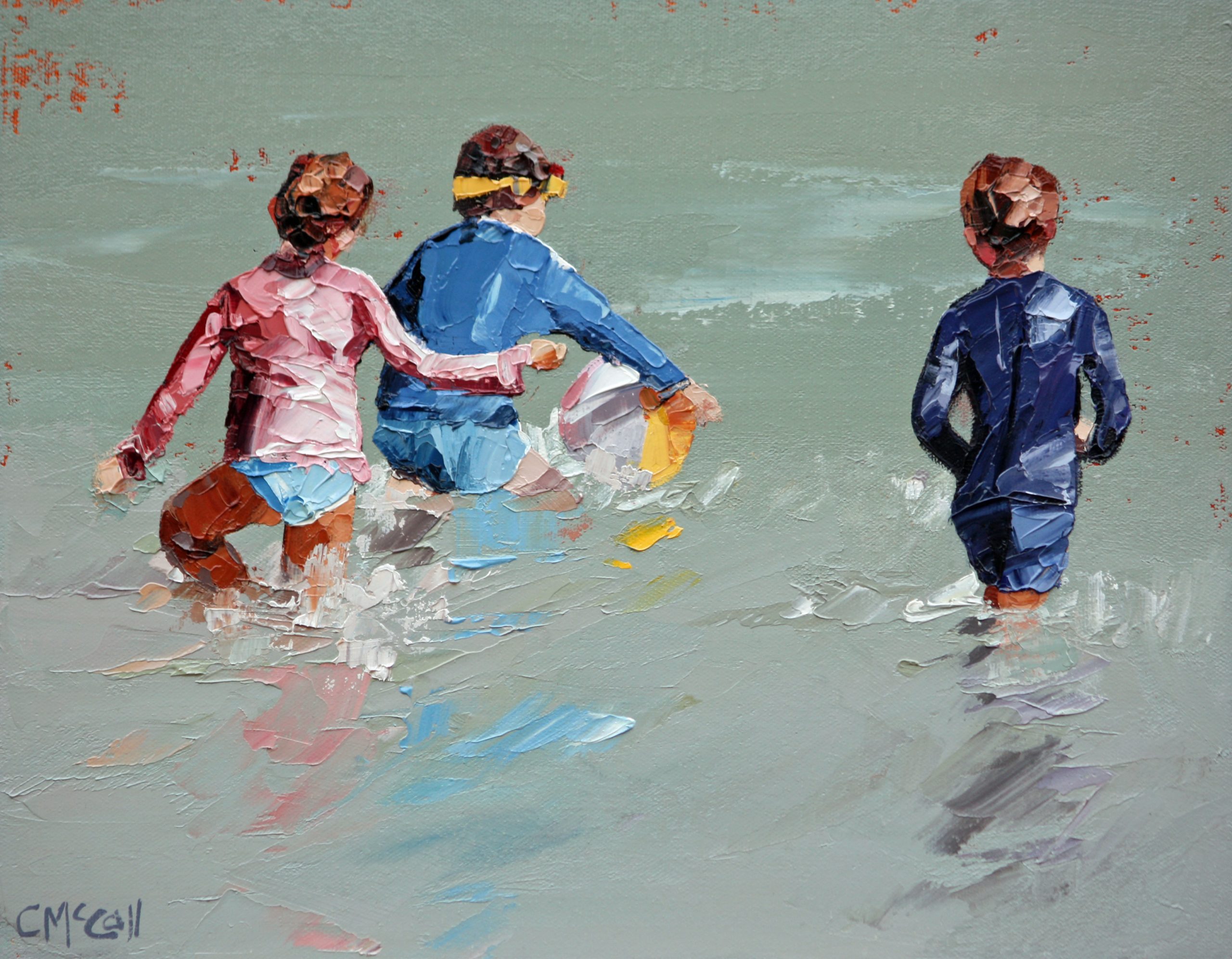 Beach Ball In The Waves II Ltd Ed Print by Claire McCall – 100% cotton giclee art print – a reproduction of my original oil painting completed with a palette knife.