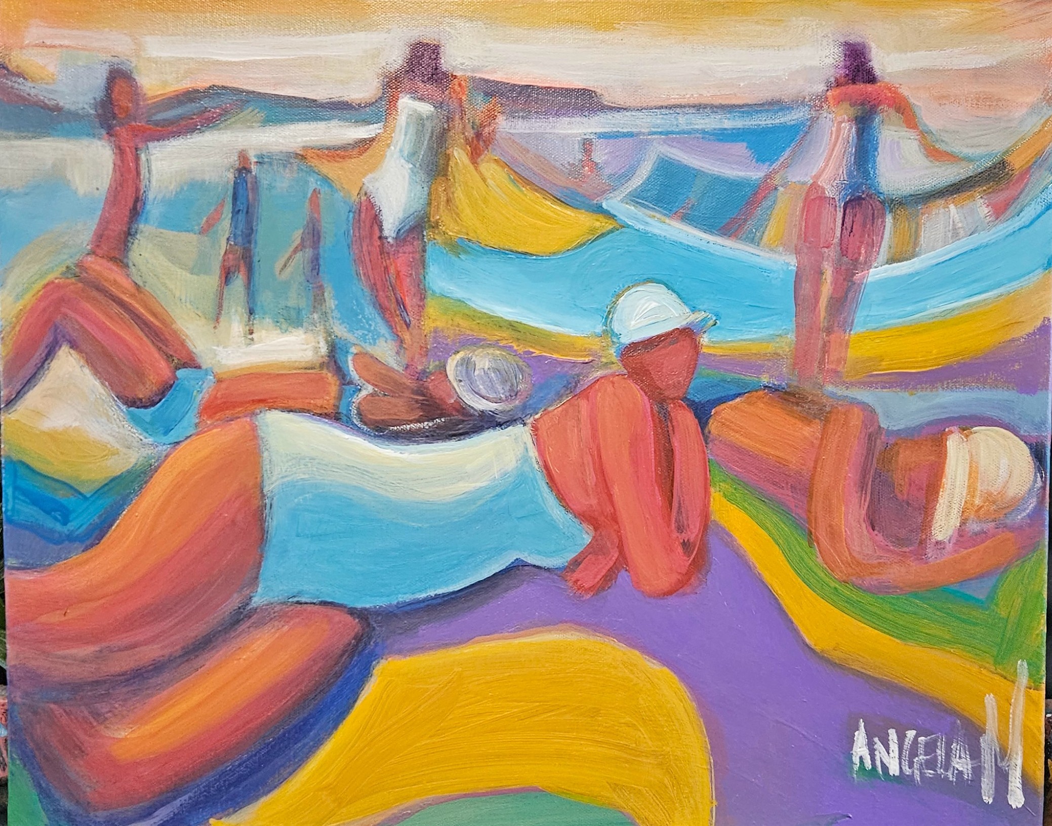 Beach bods original abstract artwork by Angela Mulligan – saunlovers in all shapes and sizez