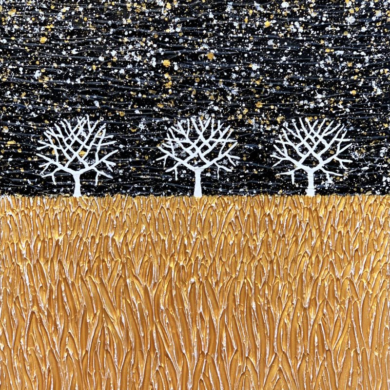 Inspired by the love of the ocean and the power of breaking waves and just being by the sea. It’s consists of bold mark making combined with a cool palette of white, grey and beautiful light and dark blues mixed with a hint of copper along with subtle grey and beige line work.