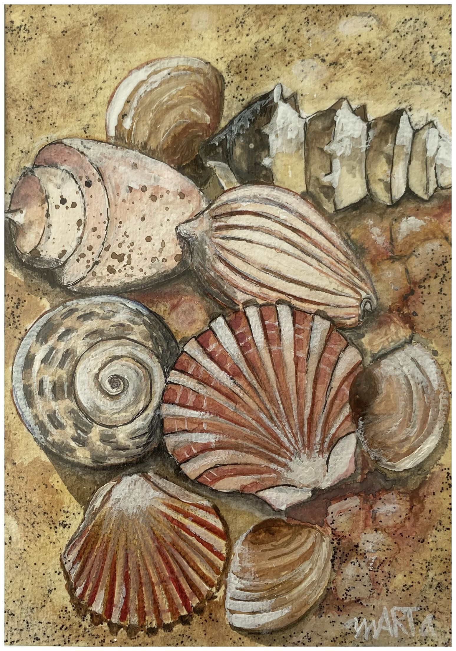 Most of my paintings have been inspired by nature as I always found nature and it’s shapes and textures challenging to recreate. And shells and pebbles are more than just objects for me, they are gems, lucky tokens, talisman and most important, memories of certain places. They are a collectors dreams and treasures to me and many others. This specific painting is a combination of different shells found along the shores.