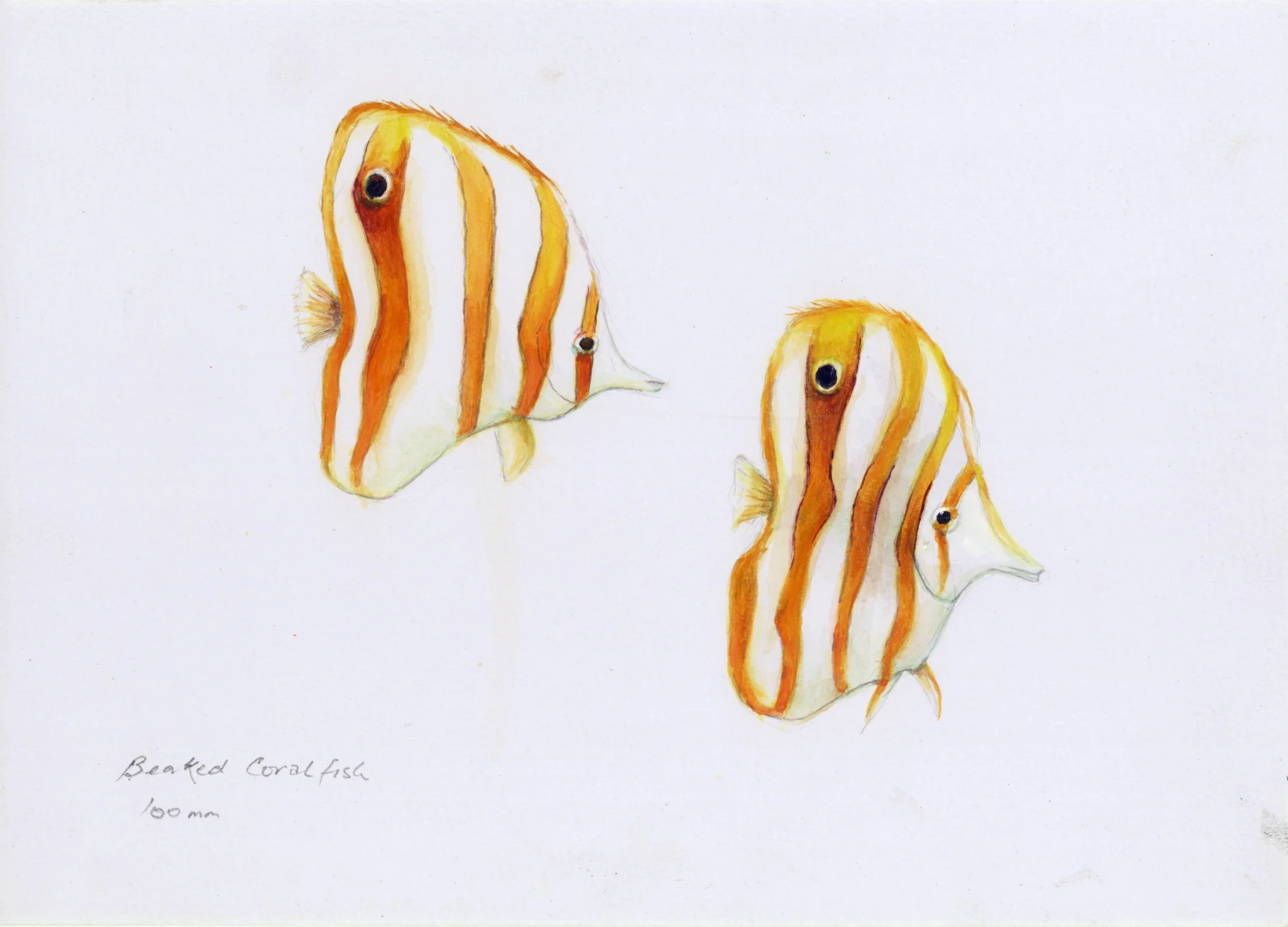 Beak Coral Fish by John Mason, as seen on the Great Barrier Reef Australia. A study painting for underwater paintings.