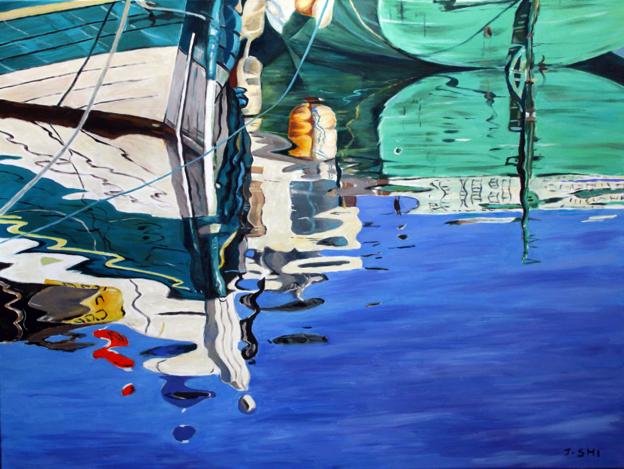Beautiful boat reflection by Jian Shi –Â Beautiful boat reflection is my new oil painting.