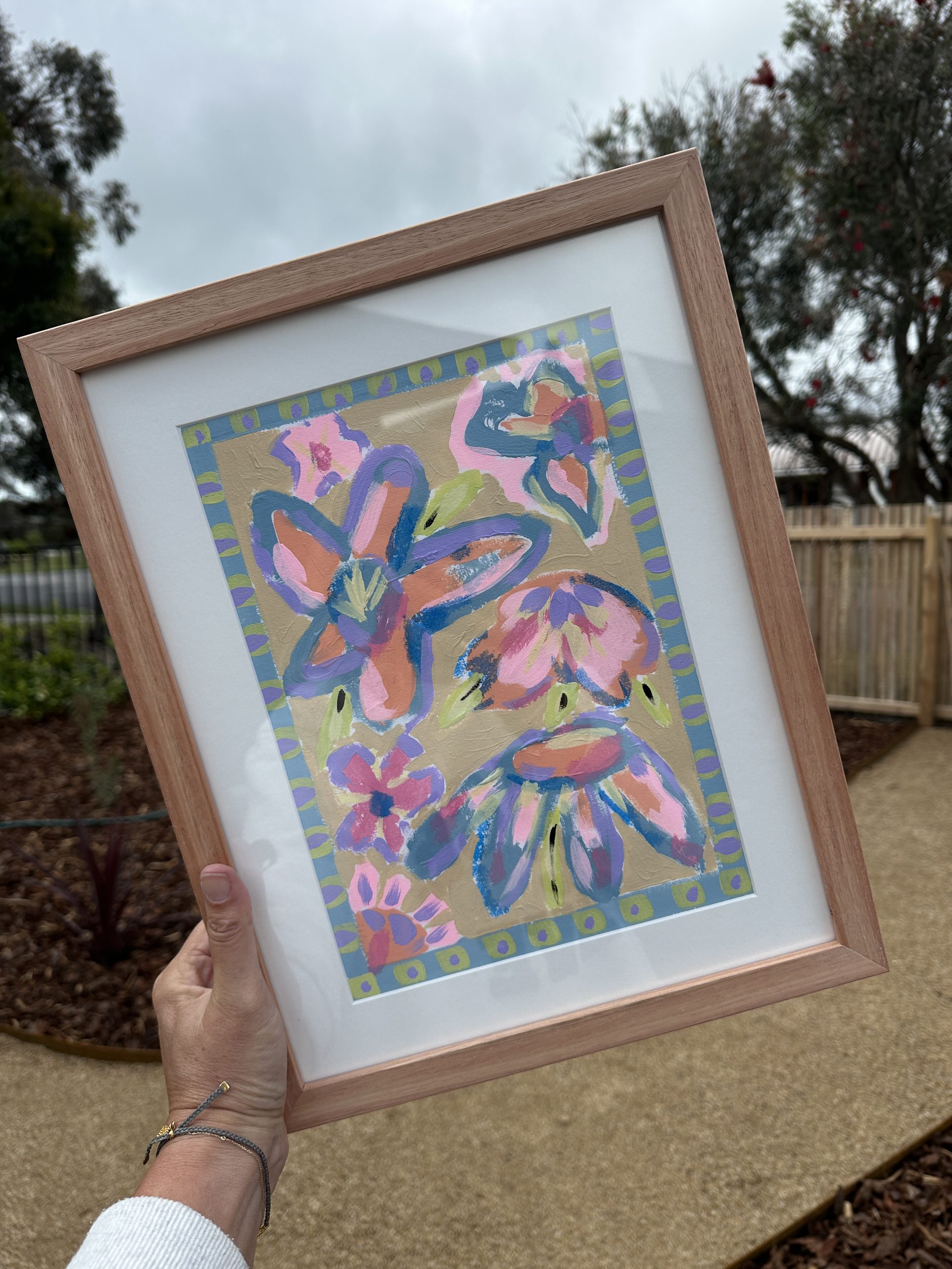 Original artwork on 300gsm paper, beautifully framed in sustainable flooded gum timber behind glass.