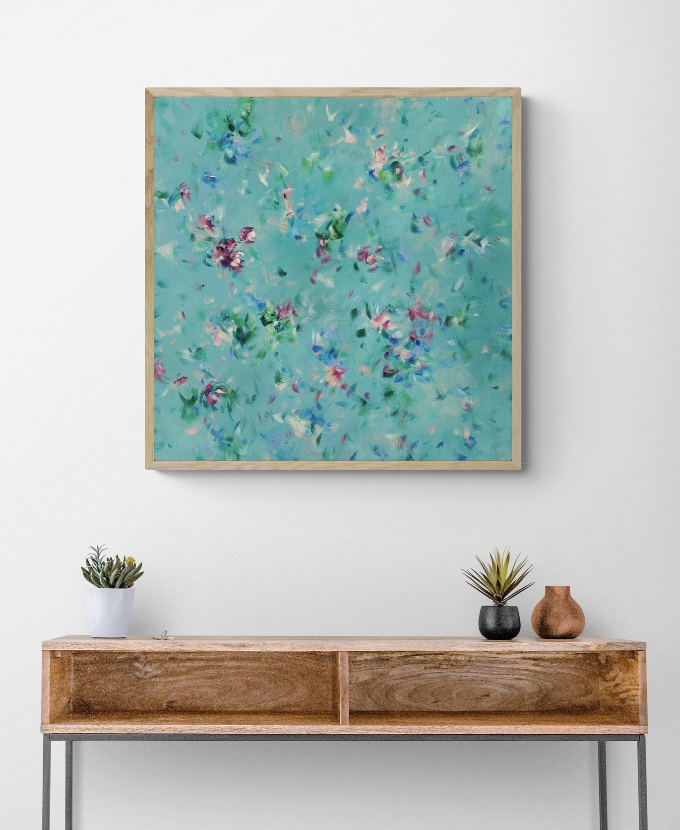 Petals chase around the canvas in this abstract floral work.