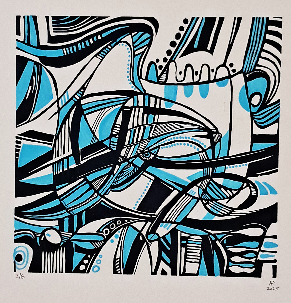 Handprinted linocut on paper, 2025