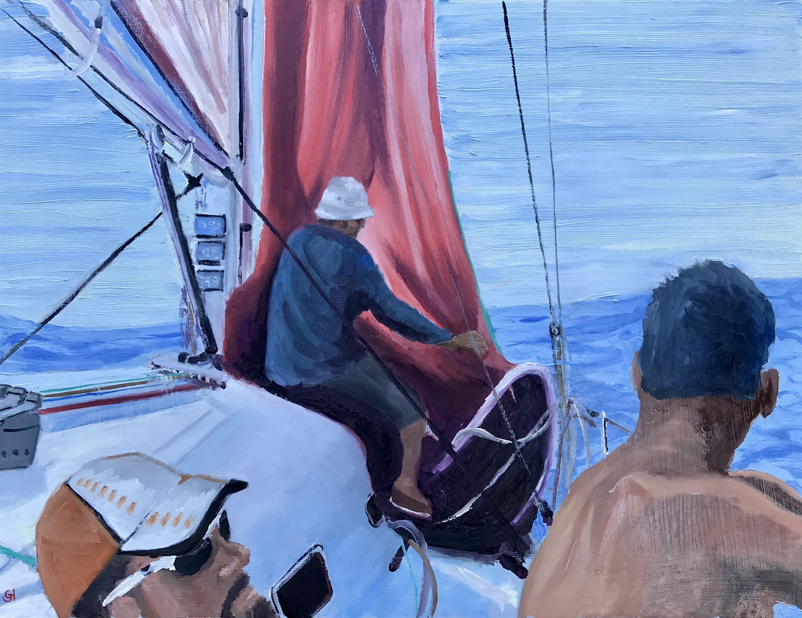 Becalmed, China Sea Race by Geoff Hargraves – in 2006 I was invited to sail with friends in the China Sea Race from Hong Kong to Subic Bay in the Phillippines. This is onboard Siren, unfortunately, sailing in the tropics, we were becalmed several times.