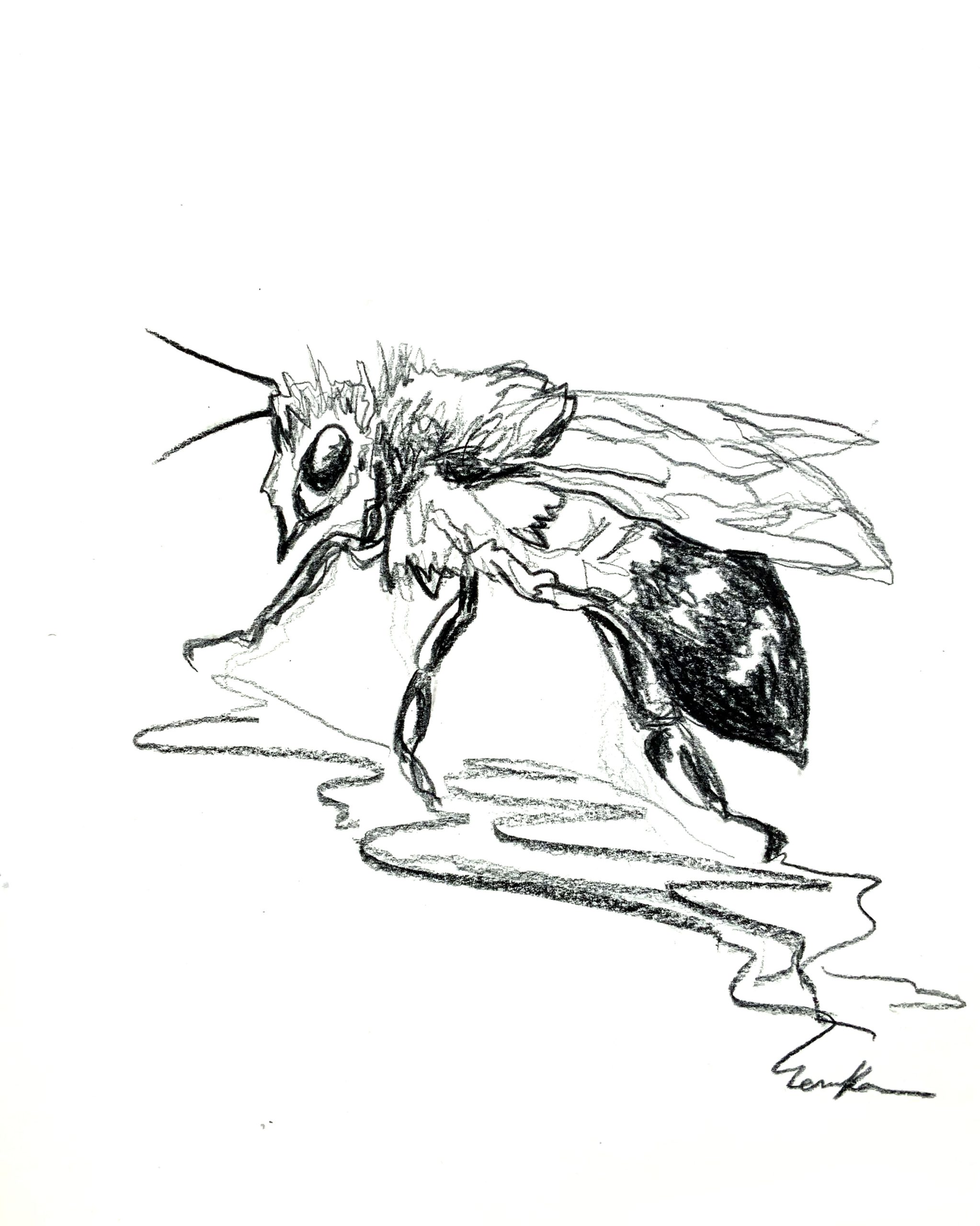 A beautiful bee drawing created in pencil on paper, by Sydney artist Leni Kae. The bee is a powerful spiritual totem animal – it works diligently to create for both the individual and the collective. It is a symbol for diligence, hard work and prosperity; but also provides a reminder to stop and smell the flowers.