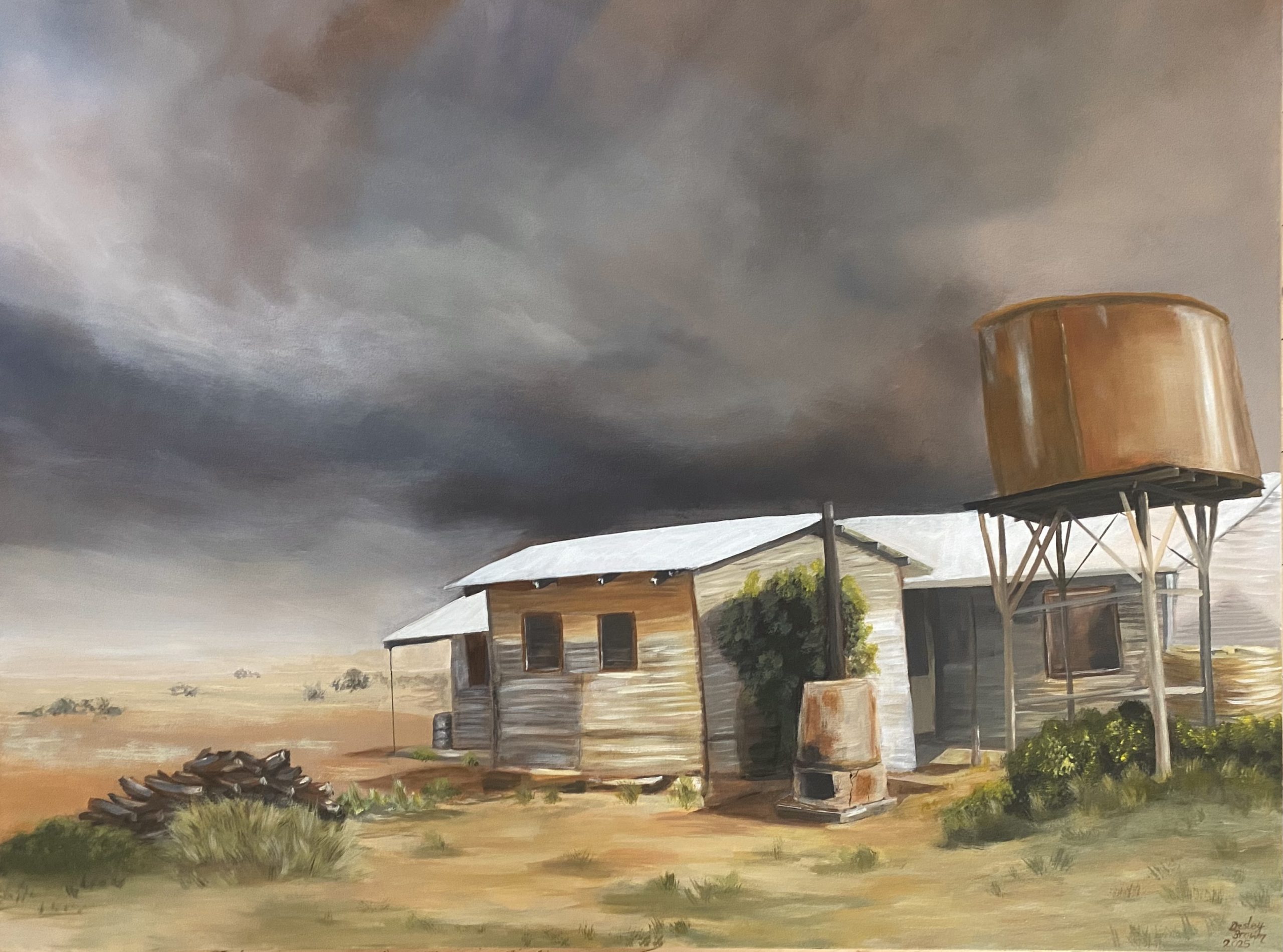 Before The Storm by Desley Brown – the air is thick, the earth is still. A storm brews on the horizon, holding its breath before the first drop falls. From a collection of photographs from the Corner Country, Australia.