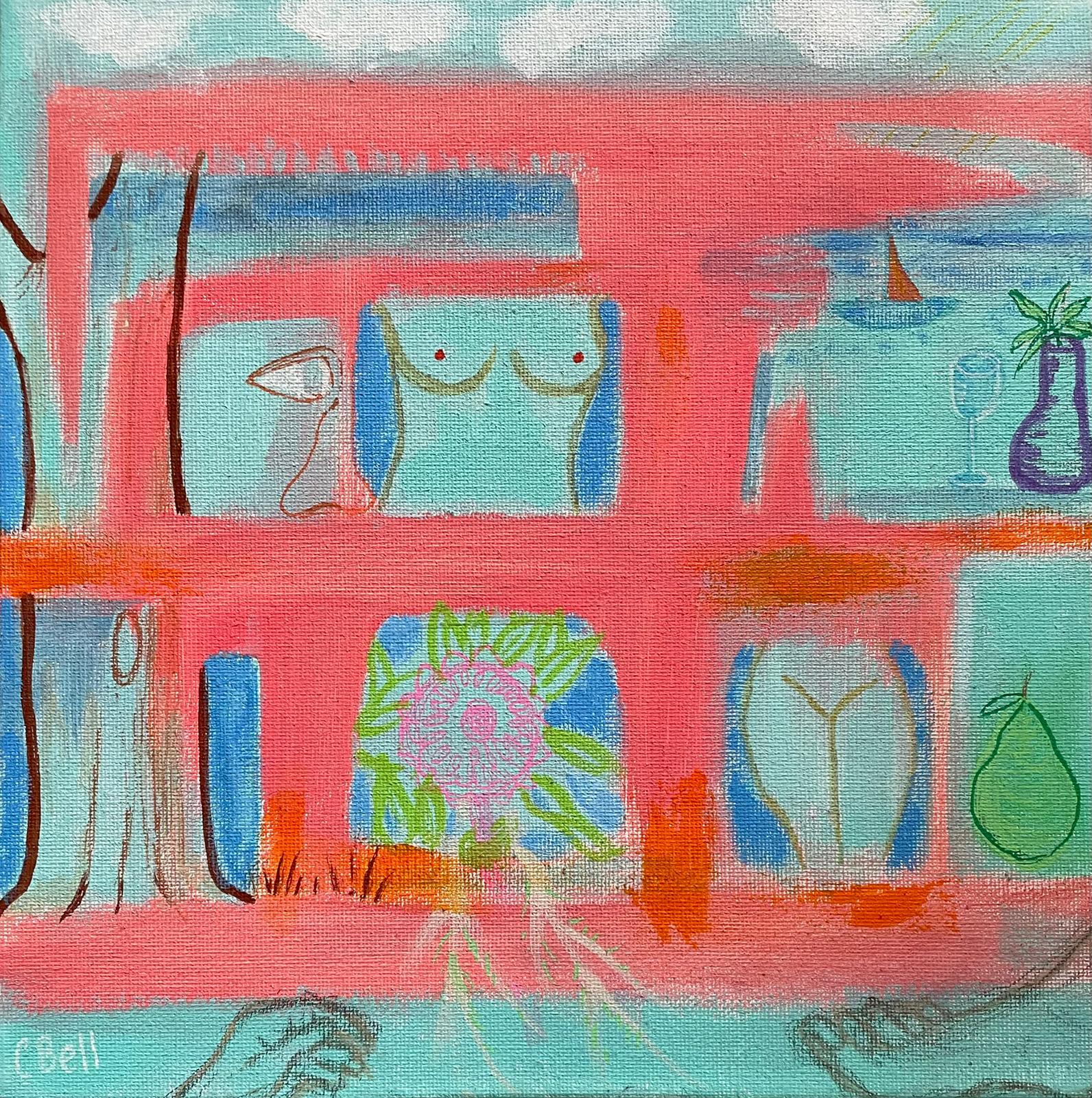 Contemporary abstract painting, reflecting on unseen moments and people’s observations behind the scenes. Influenced by Surrealism, Cecilia’s painting is a unique work of art, imaginative and thought provoking.