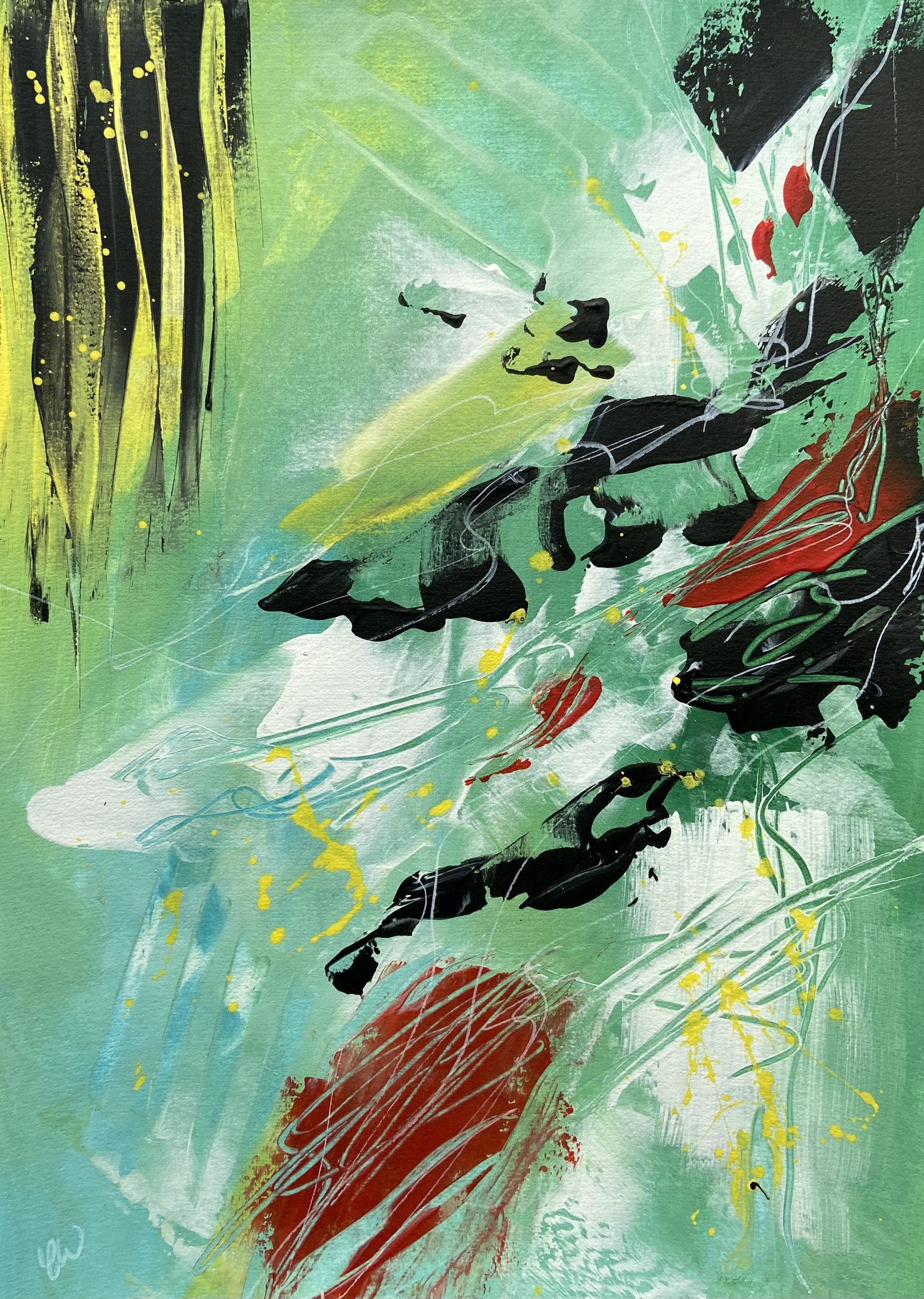 A striking abstract painting full of expression. Frames not included. 29.7 x 42 cm (A3 size) Acrylic on paper. Requires framing.