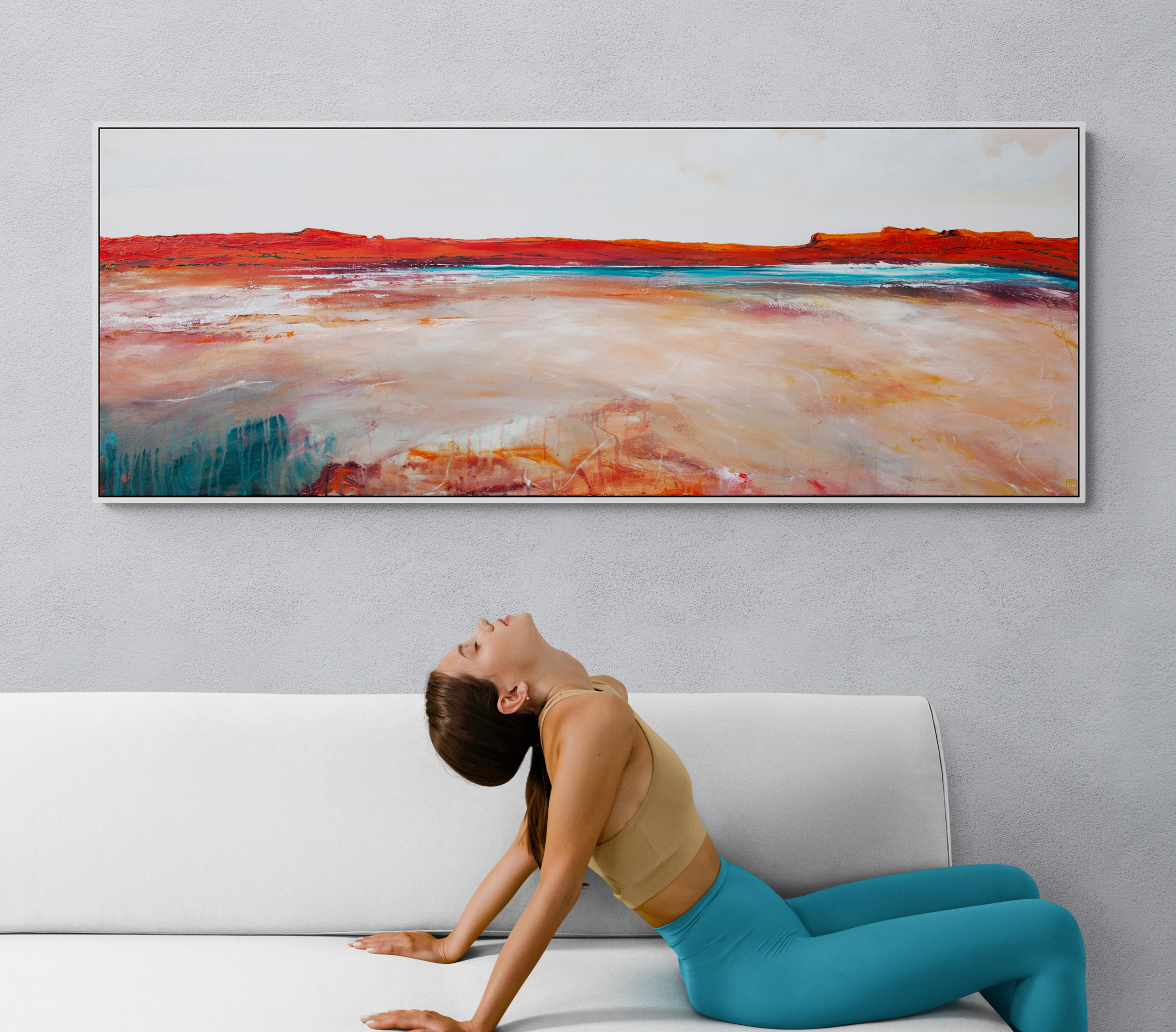 Beneath The Summer Sky by Tania Chanter is inspired by the beautiful Australian landscape and the changes of light and mood throughout the day. Tania’s hope is that this painting brings a sense of calm to the room where it lives, and that is makes the people who enter the room feel as though a part of nature is right there with them.