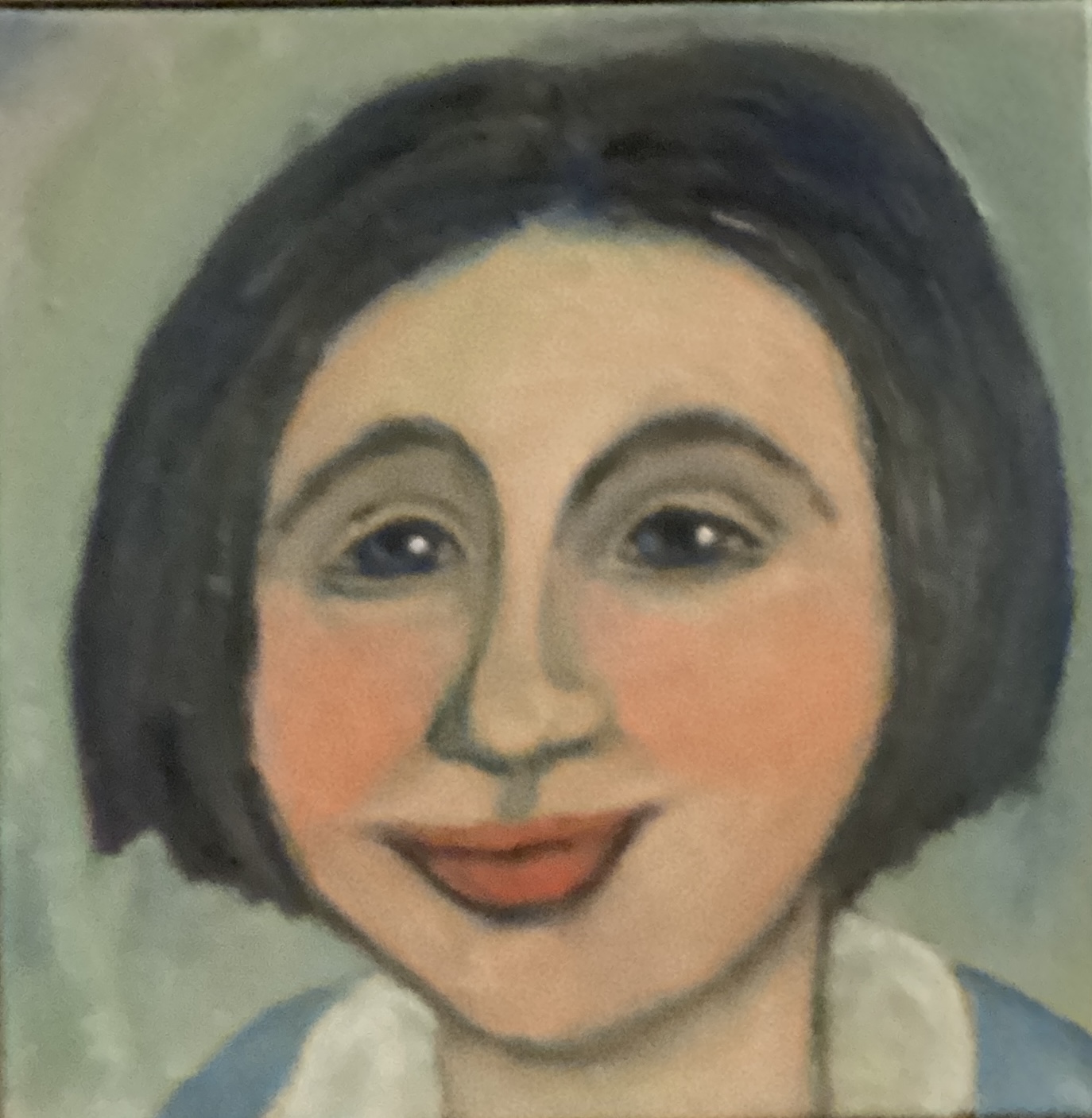 Beth by Margaret Connell – The image is of a woman Margaret encountered some years ago and was created from traces of memory of her .The paint colours were chosen to depict the vibrant face of the woman . A face was chosen because of Margaret’s life long interest in peoples faces and depicting them in drawings  and paintings  .Margaret uses colour to depict emotions but also colours are chosen to enhance another colour .This painting is original.