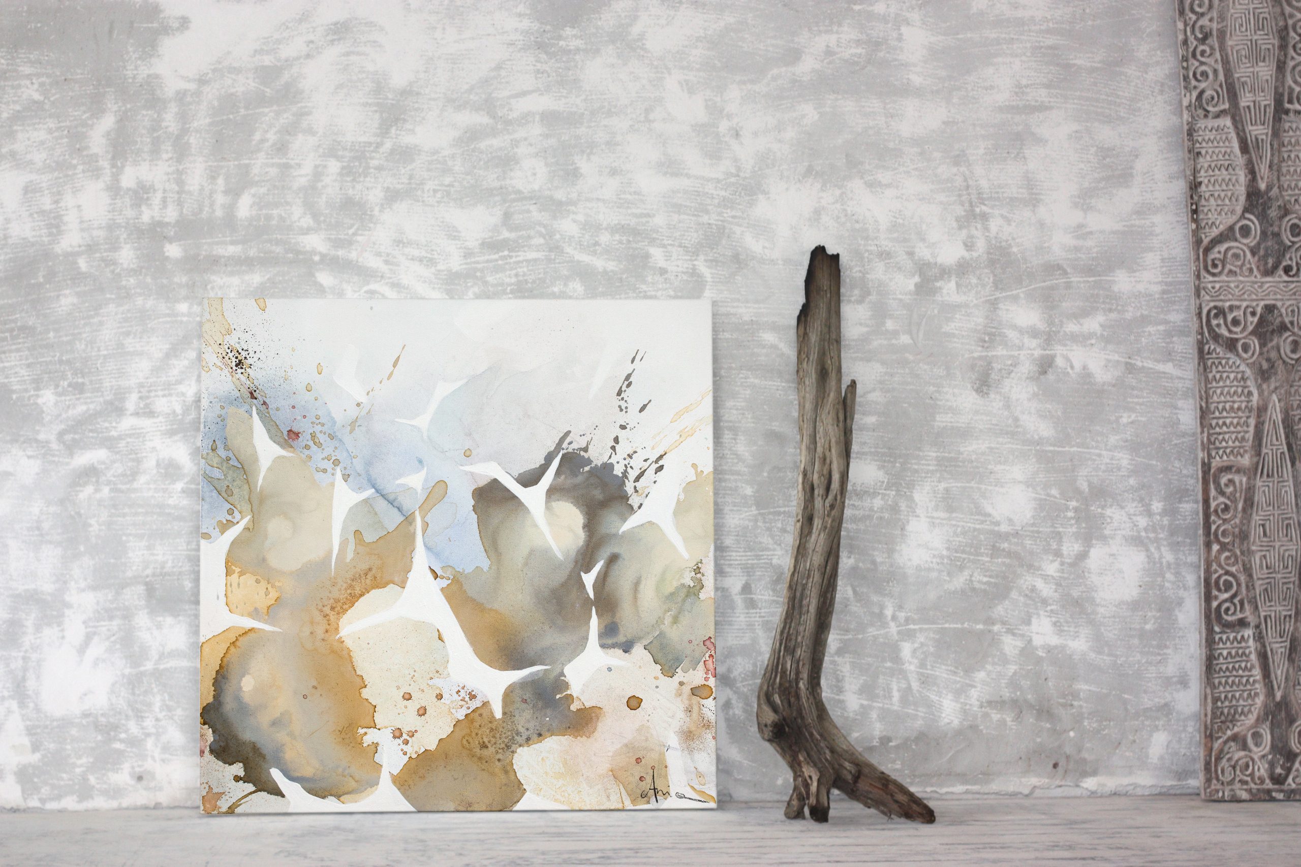 Though all my pieces are purely abstract, upon viewing we intuitively recognise a visual language that mimics the currents of the ocean, natural formations of the earth, a flower in new bloom or the patterns of precious stone. They activate the senses, allowing for immersive visual experiences that transport you outdoors, straight into nature’s arms. This striking piece harnesses Japanese aesthetic principles, including Ma.