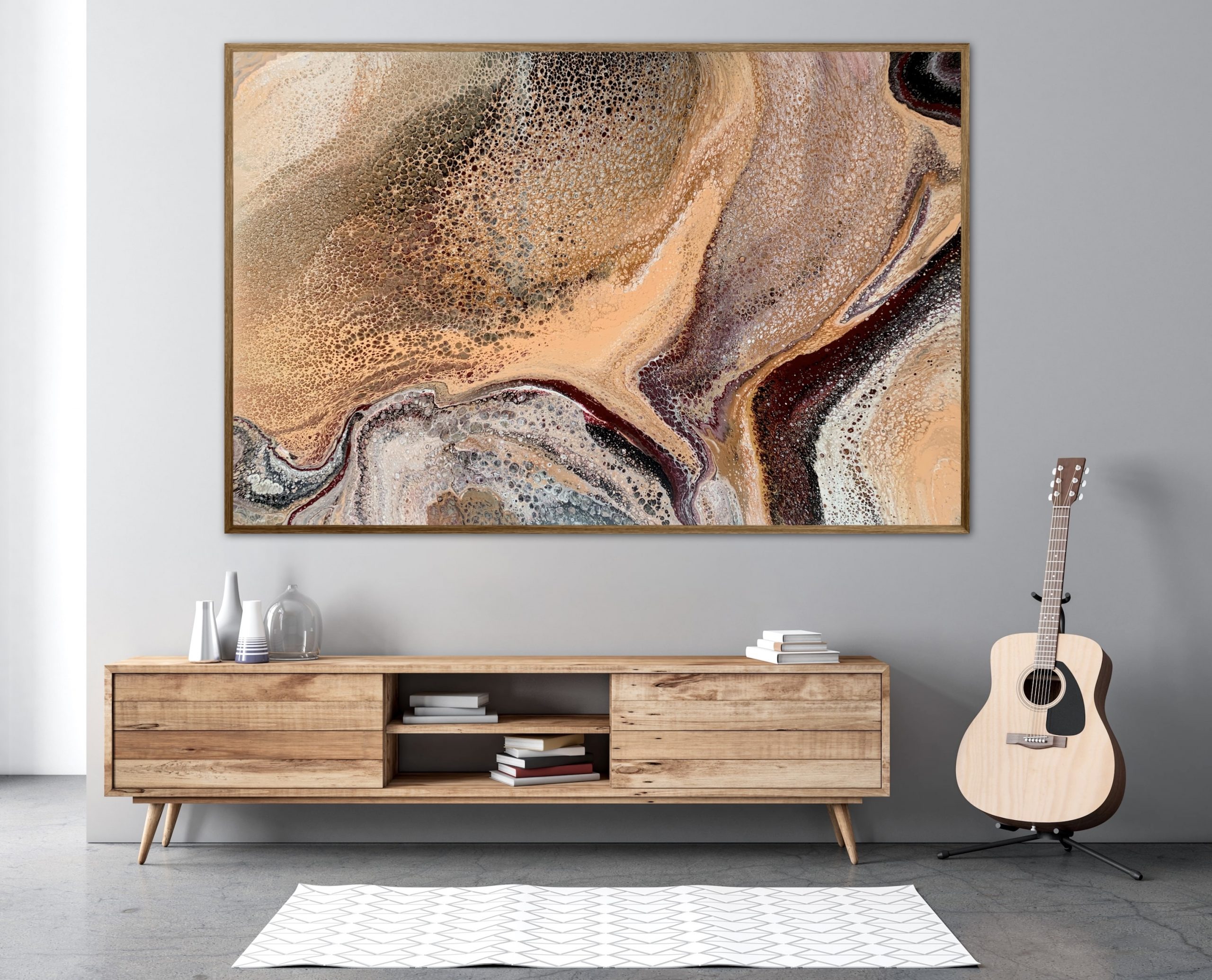‘In situ’ photos have been included to help with visualisation of the artwork in your home. In situ photos provided were created using the ArtStage app and may not be perfectly to scale. This being said, every effort has been made to represent the size of the art accurately but please read the dimensions of the artwork to ensure it fits your space perfectly. Where provided, photos of framed art are for illustrative purposes only.