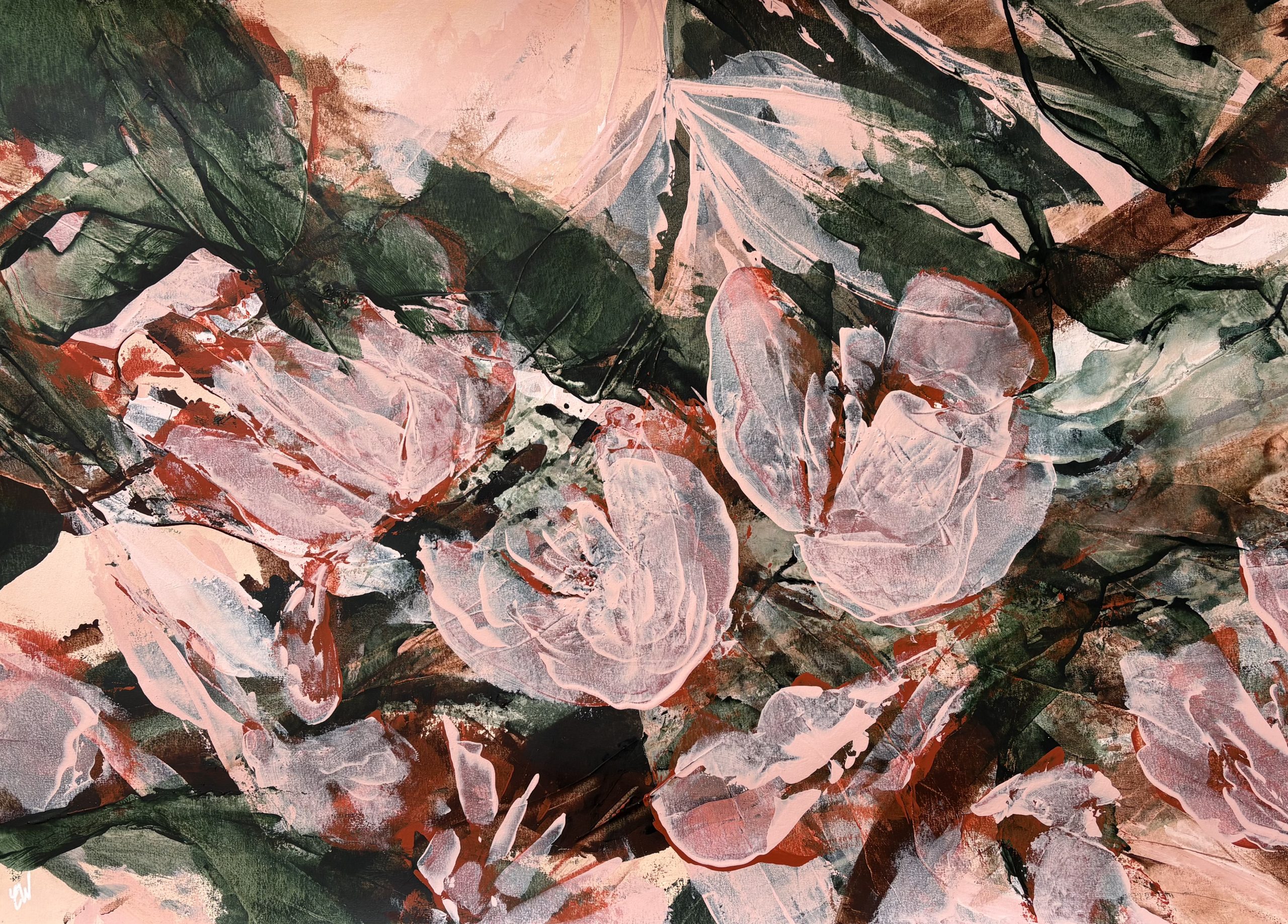A beautiful abstract botanical painting. 59.4 x 84.1 cm (A1 size). Acrylic on paper. Frame not included. Requires framing.