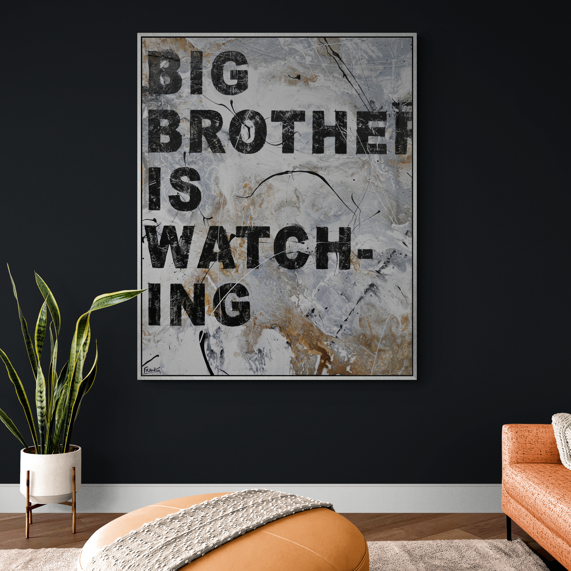 Hi there spunky art lover! Thank you for looking in on this piece… “Big Bro” is the latest in this ongoing word series and features a beautiful textured and layered abstract background with grey, black and white acrylics, oils and inks….and in this instance some rusts!