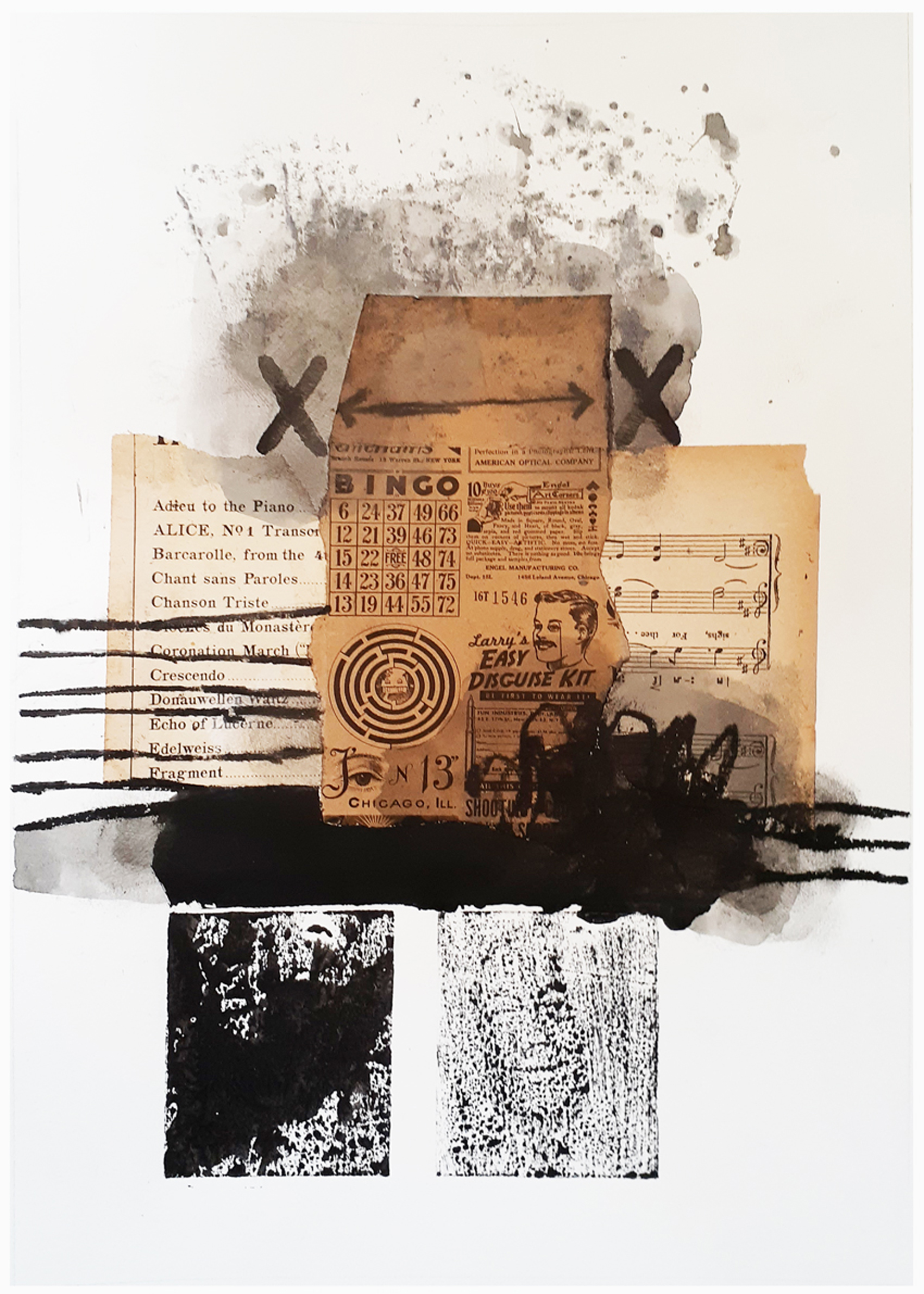 ” Bingo” is an original mixed media artwork by G Kustom Kuhl on Lana 220 gsm paper. The work relates to the joy created from within that breaks barriers we create for ourselves, like winning bingo! The work uses pencils, inks, paint, stencils, vintage papers and hand made from that have been printed. Signed and titled at the bottom of work and supplied with a certificate of authenticity.