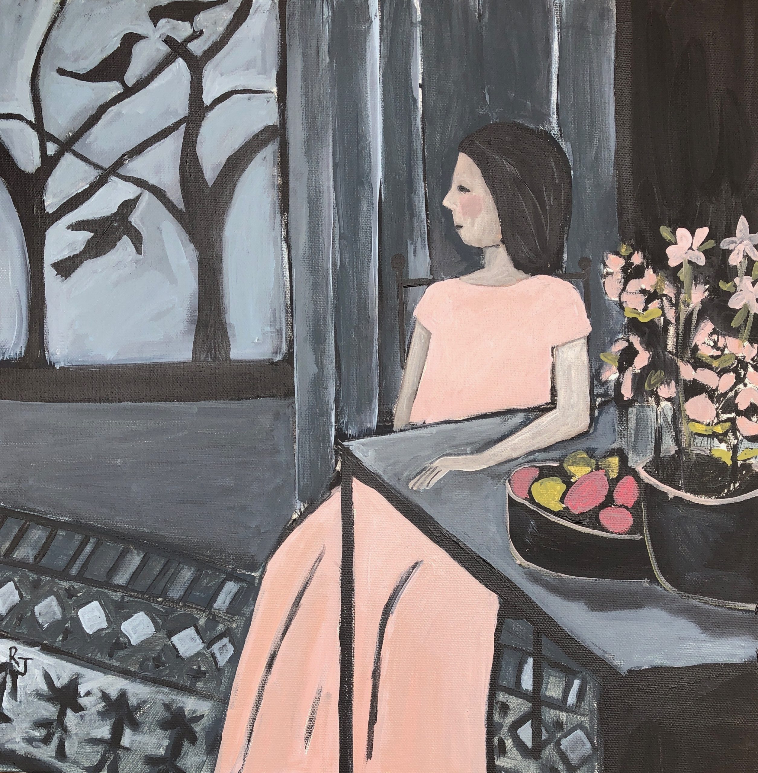 I hope that my art captures something true about the world — the beauty of the ordinary, the complexity of human interaction, the intensity of an emotion. My art is largely figurative and I attempt to represent what I see and experience with a sense of appreciation and humour. My work is colourful and eye-catching and can tend towards the naive, sometimes incorporating elements of fantasy. I like my art to tell a story, to prompt the viewer to think ‘I know exactly how that feels,’ or to inspire a sense of joy, longing or nostalgia.
