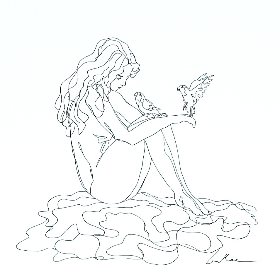 Birds by the Lake by Leni Kae – Beautiful and delicate original line art drawing by Sydney artist and illustrator Leni Kae (c). Featuring a nude woman sitting by the lake, one bird on her hand and another bird flying; it symbolises taking a moment to appreciate the beauty of life’s simple pleasures. A beautiful and affordable unique gift for bird lovers. Works come with a certificate of authenticity. Gift card provided for gift purchases.