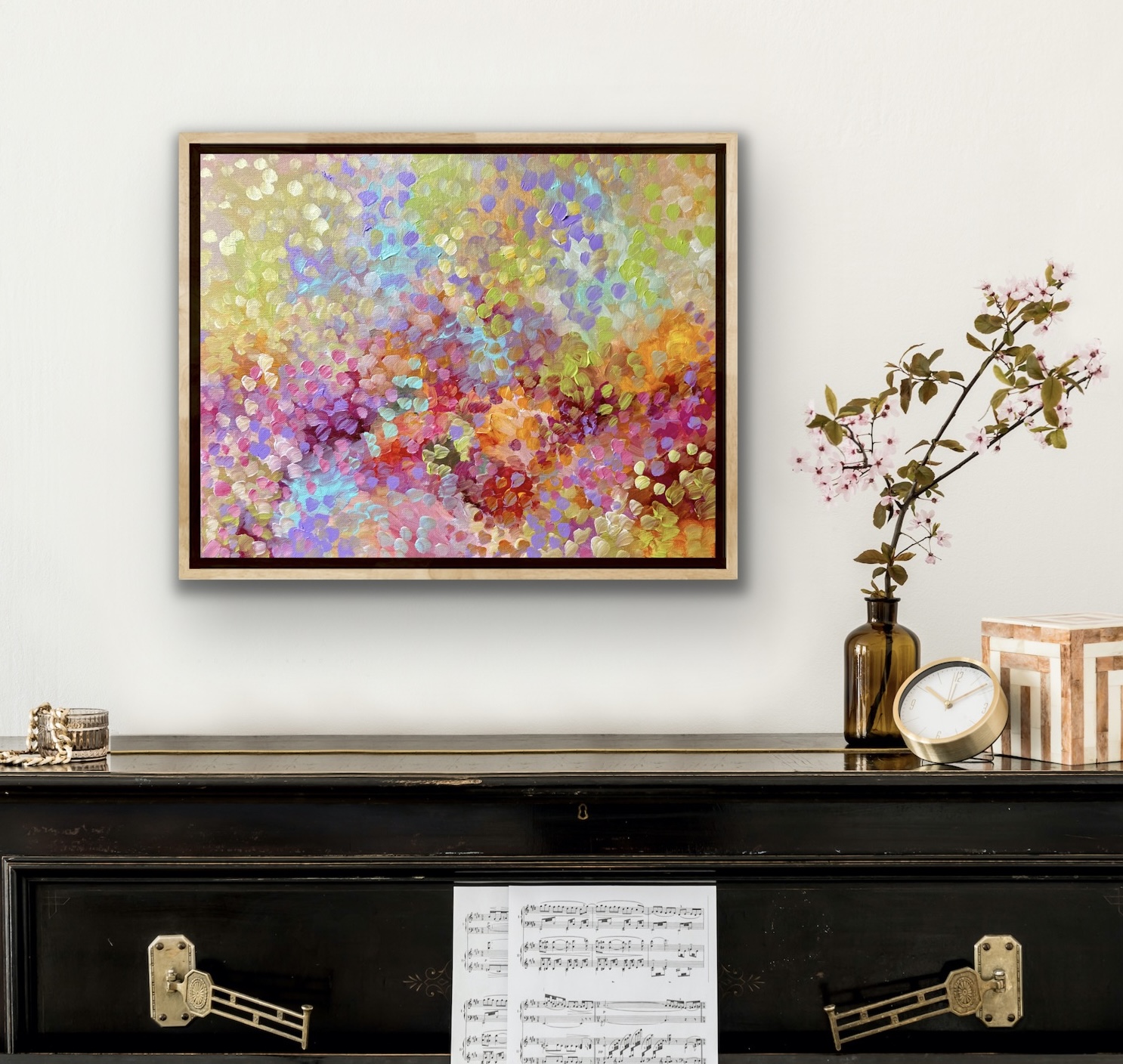 Birds of Paradise by Theo Papathomas is a very soothing and tranquil painting with so much depth. I wanted to have a lot of space to bring out all the beautiful colours of the forest. I tried to create this beautiful composition of soft colours of the landscape. Capturing the beautiful colours of the petals, foliage of the trees like musical notes dancing in the landscape. A very harmonious and tranquil composition that can be enjoyed many years to come. The painting is signed and dated 2020 at the back and comes with a certificate of Authenticity.