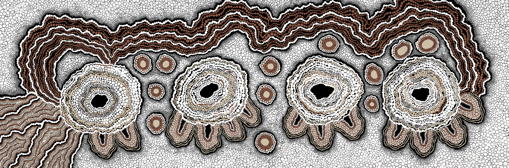 Birthing Place, is a visual representation of sacred women’s water holes. These water holes are traditionally used for birthing and after birth care.