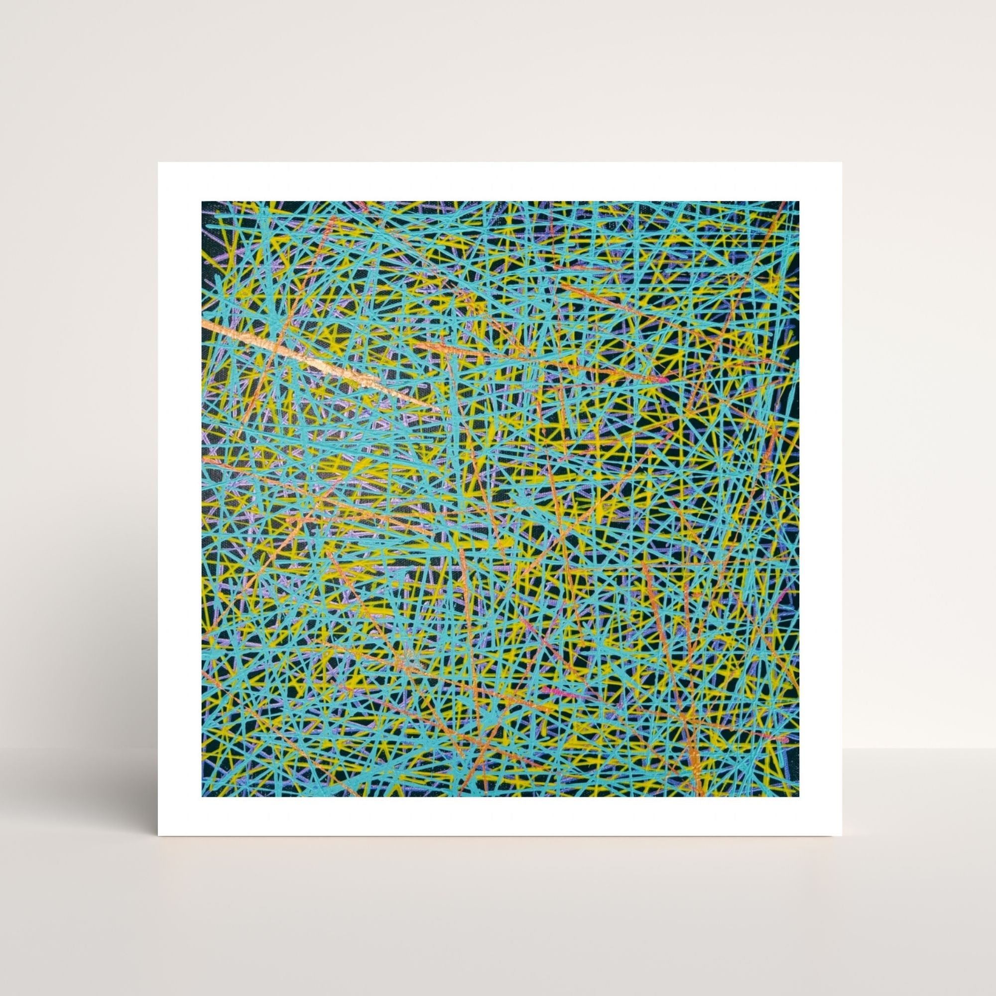 ‘Black & Turquoise’ by Lillian Beales is a bold yet harmonious exploration of contrast and depth, created using my signature hatched painting technique. The interplay between the deep black tones and vibrant turquoise evokes a sense of mystery and movement, much like the ocean at night, where moonlight catches the shifting waves. The addition of a gold leaf accent brings warmth and luminosity, highlighting areas of the composition where light seems to dance across the surface.