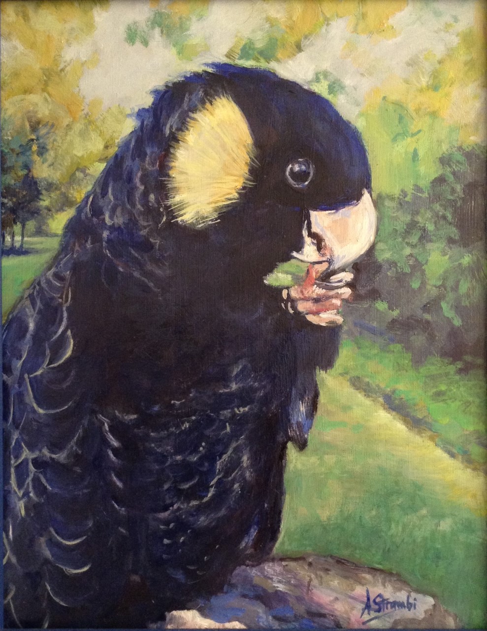 Black Cockatoo by Anne Strambi – This original painting was inspired by my daughter’s beautiful yellow tailed black cockatoo.