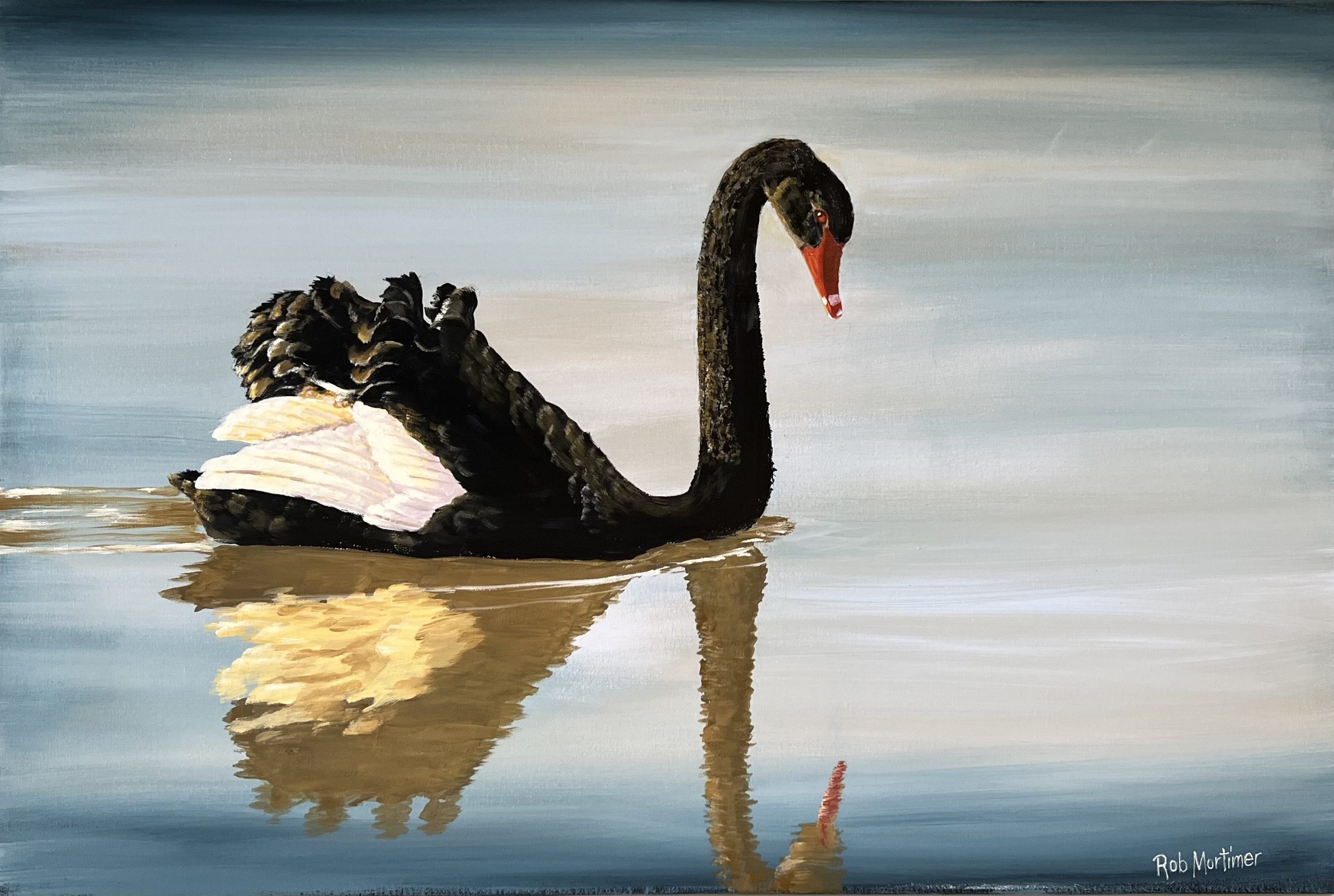Black Swan – Original acrylic by Robert Mortimer. With edges painted.