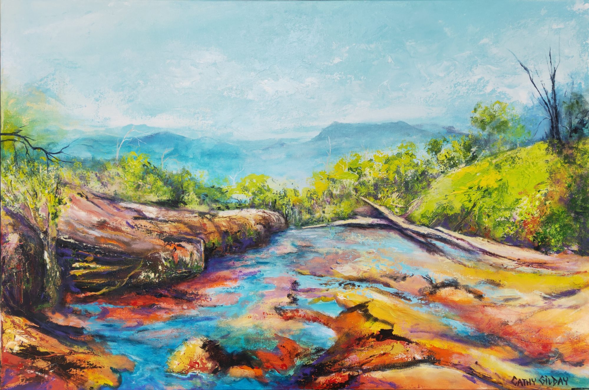 Blackfellow Falls Springbrook NP by Cathy Gilday – Blackfellow Falls are situated in the Springbrook National Park, here on the Gold Coast. They are just a short walk from Twin Falls, through dense rainforest. The views from this point, are spectacular and this makes it a very popular destination for hikers and nature lovers. Sides painted, sealed.