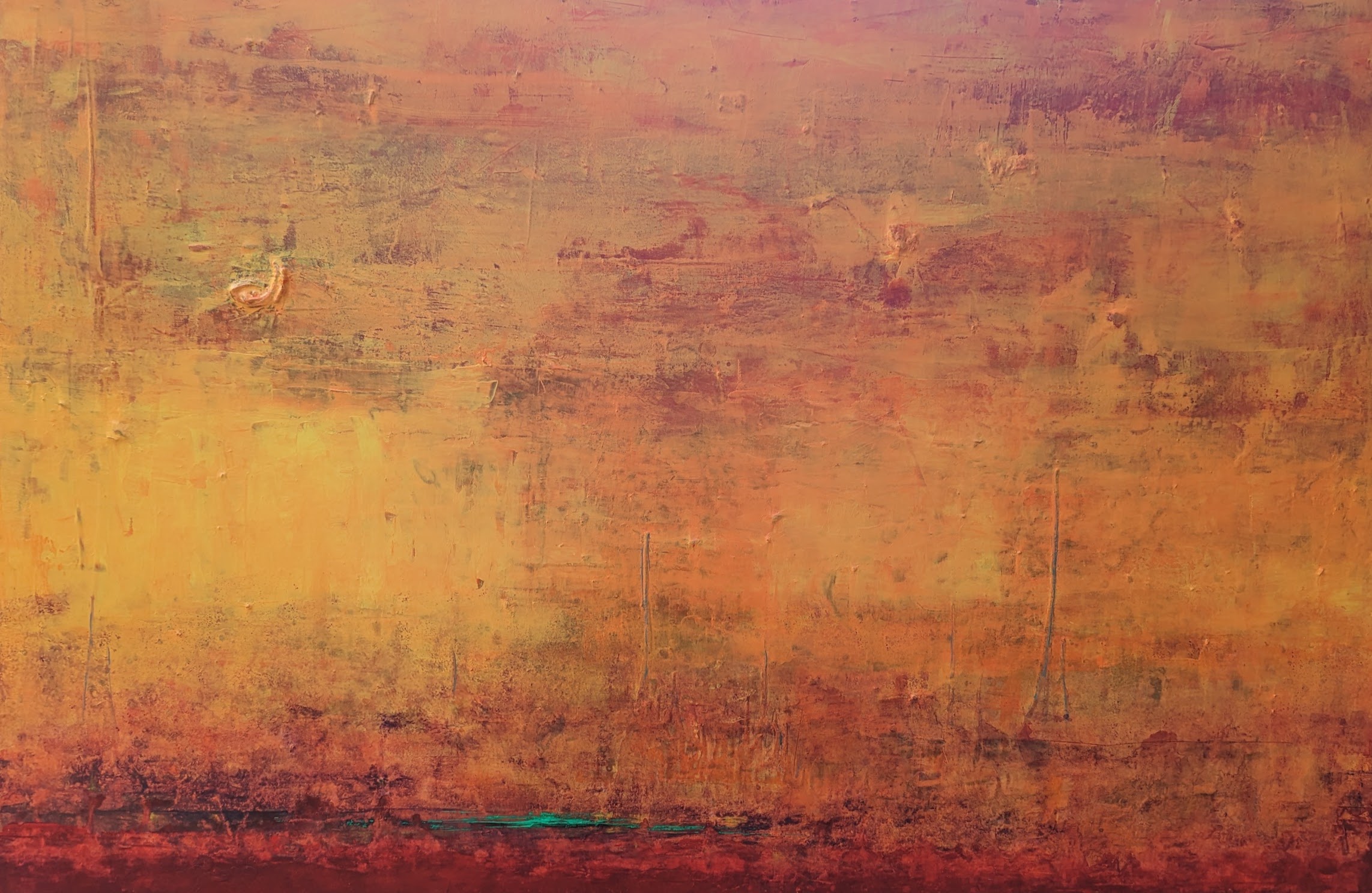 The fiery hue of the colours in the artwork is representative of the intensity and passion of the fires, while the abstract nature of the painting reflects the spontaneous and unpredictable nature of such nature disasters.