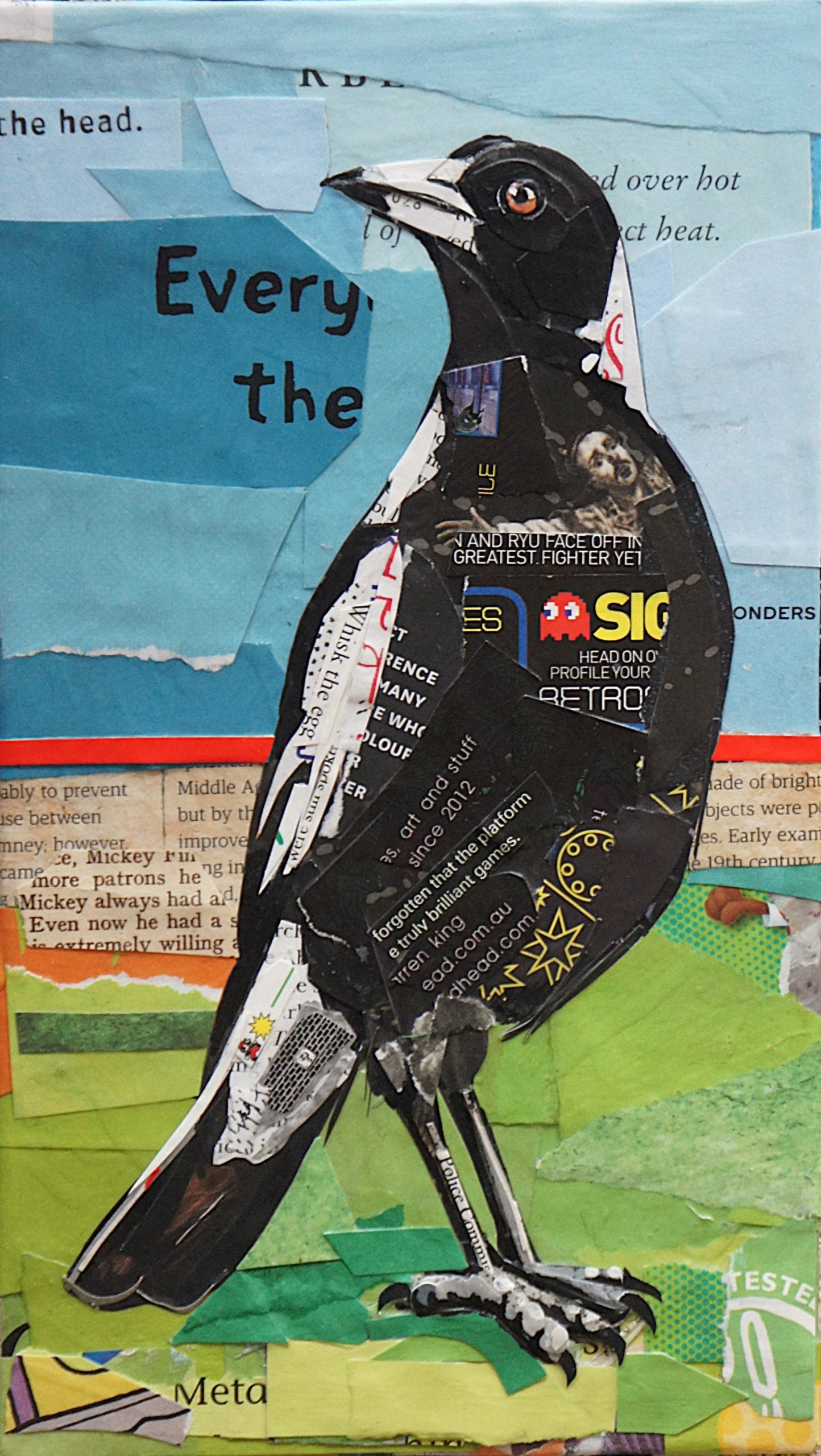 This piece was made entirely from paper pieces. The paper elements have been taken from discarded or damaged books, junk mail, kids books, packaging materials, brochures and vintage magazines. Reusing materials that would otherwise be discarded.