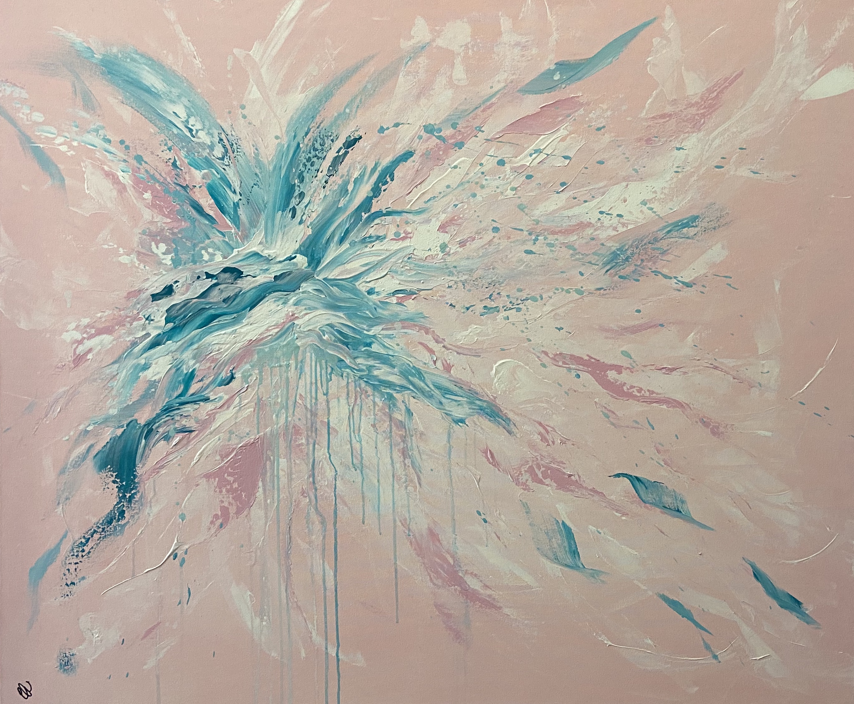 Bliss Is – A beautiful soft pastel coloured abstract piece that will brighten any room. Acrylic on canvas. Ready to hang.