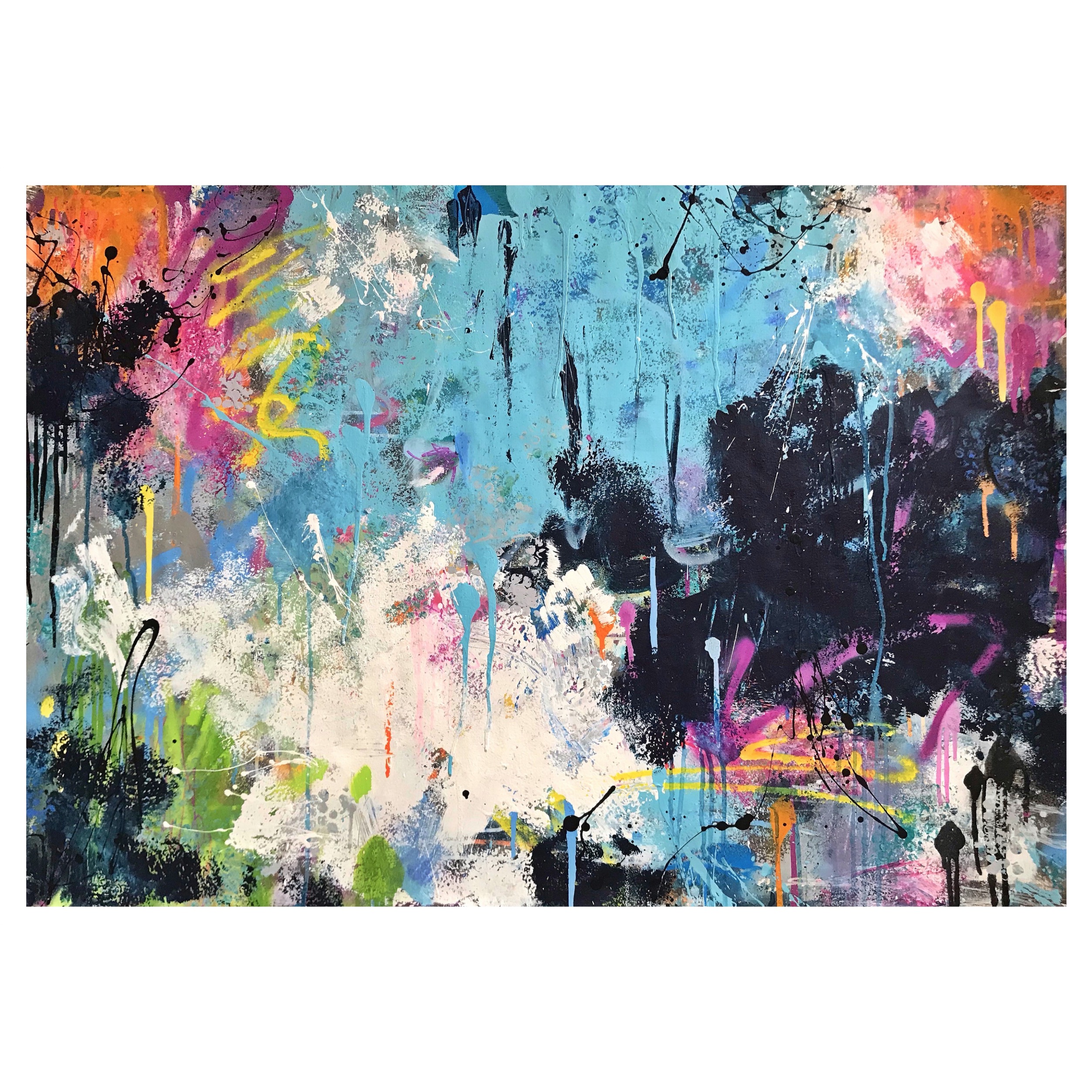 The Painting was created on Quality Recycled Japanese Paper with Acrylic Paint, Sugar Spray Packs, Stencils & Paint Pens.