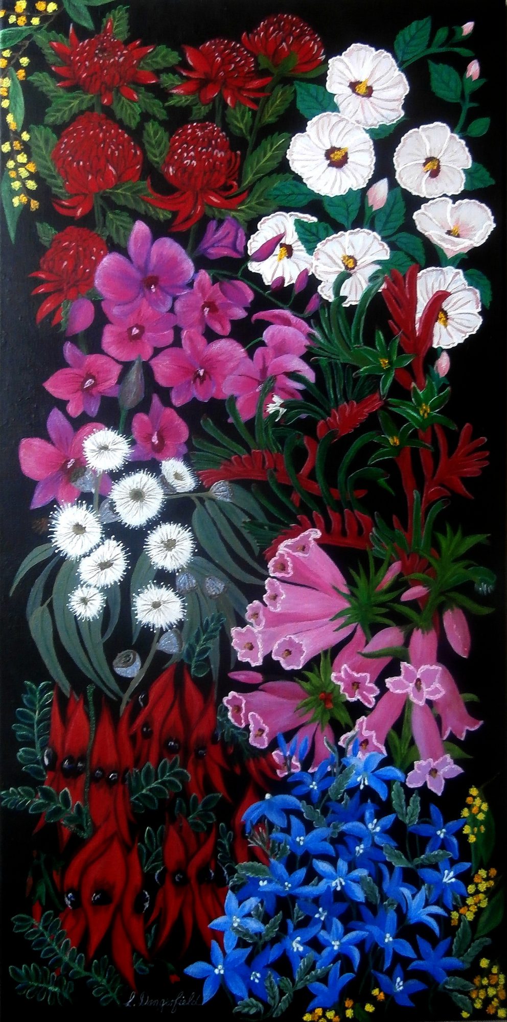 Australian native flowers, State and national floral emblems. Vibrant, Colourful, Bright, Bold.