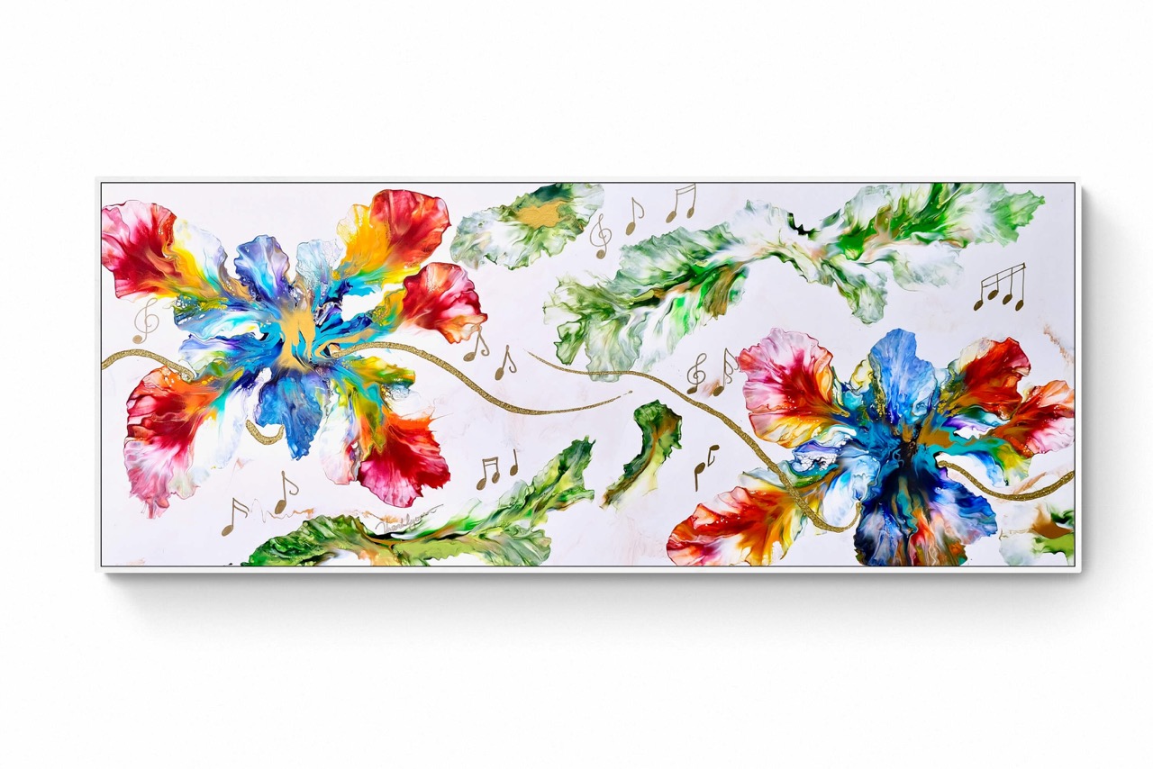 • Original artwork created with acrylic paint, water and latex on stretched canvas, framed in white.