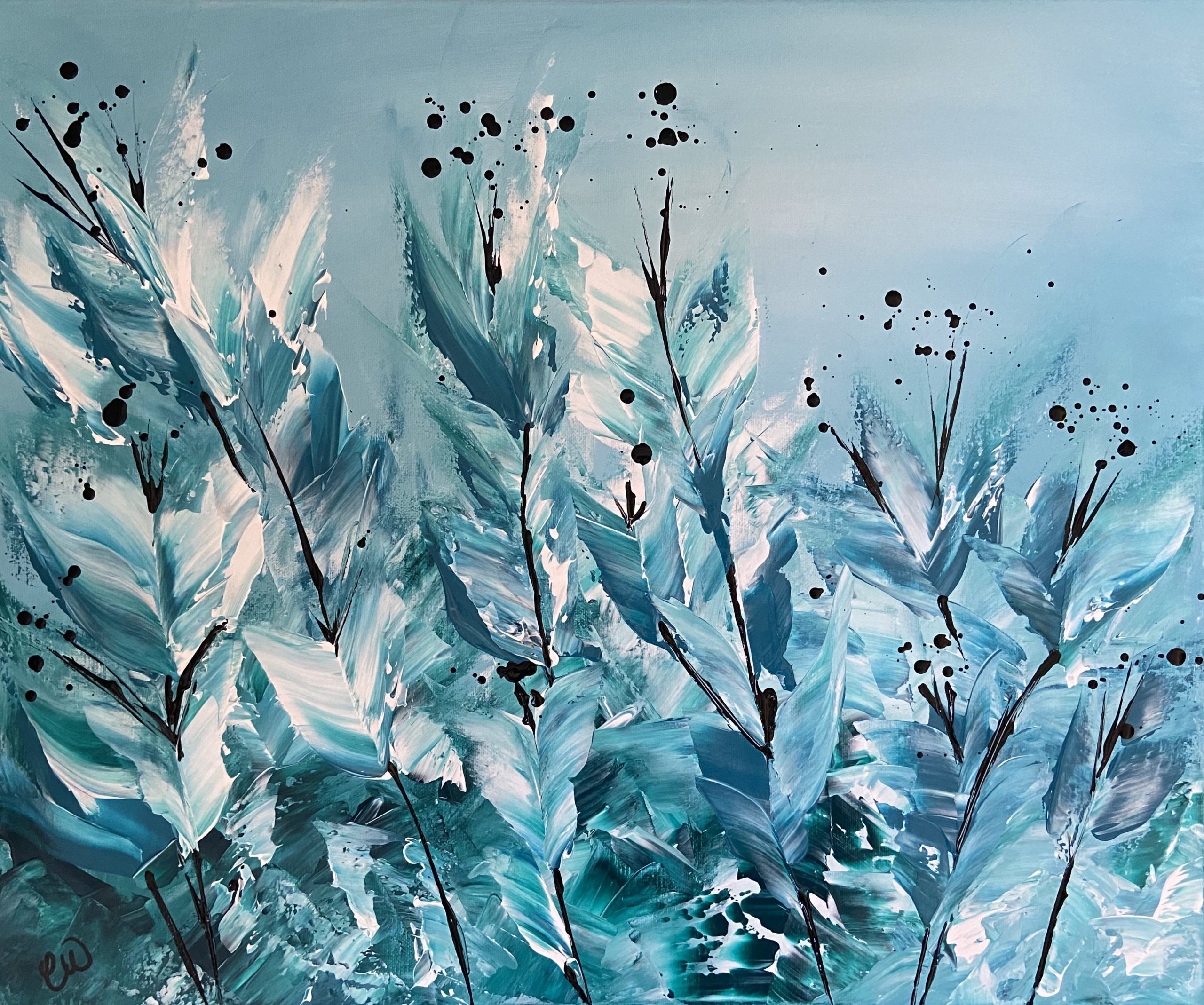 Blossom by Carrie Welsh is a beautifully tranquil abstract floral piece. This will add beauty to your home. 50 x 60 cm. Acrylic on canvas, ready to hang.