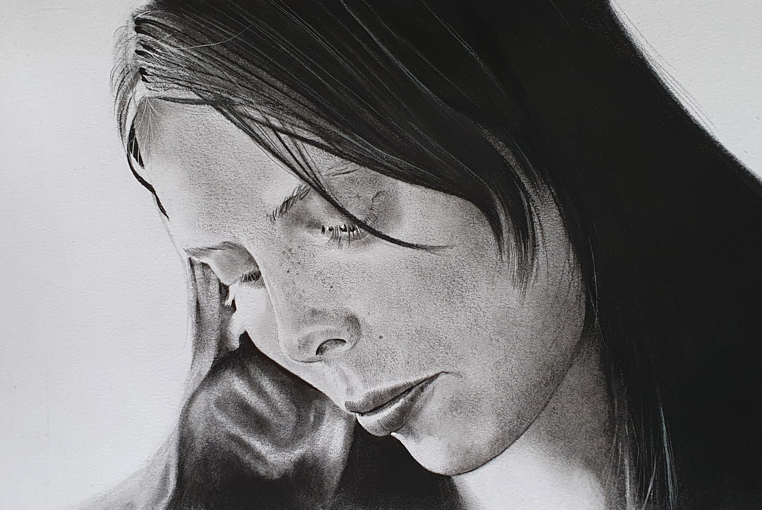 Blue by Susan Boyle Original charcoal and matt graphite pencil portrait on drawing paper 225GSM