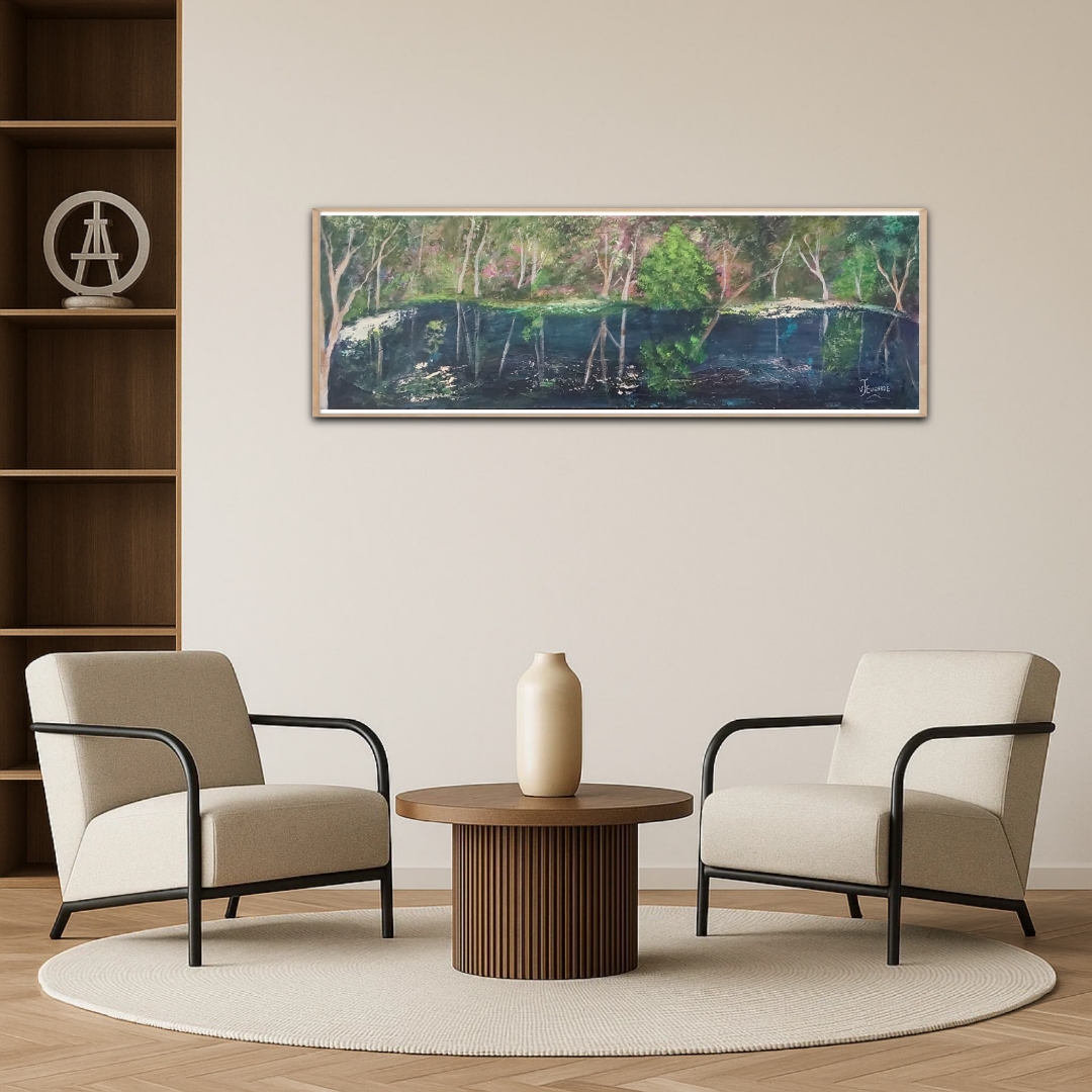 This serene landscape has many layers of quality paint and it is my interpretation of the lakes, wetlands and lagoons in my corner of the world.