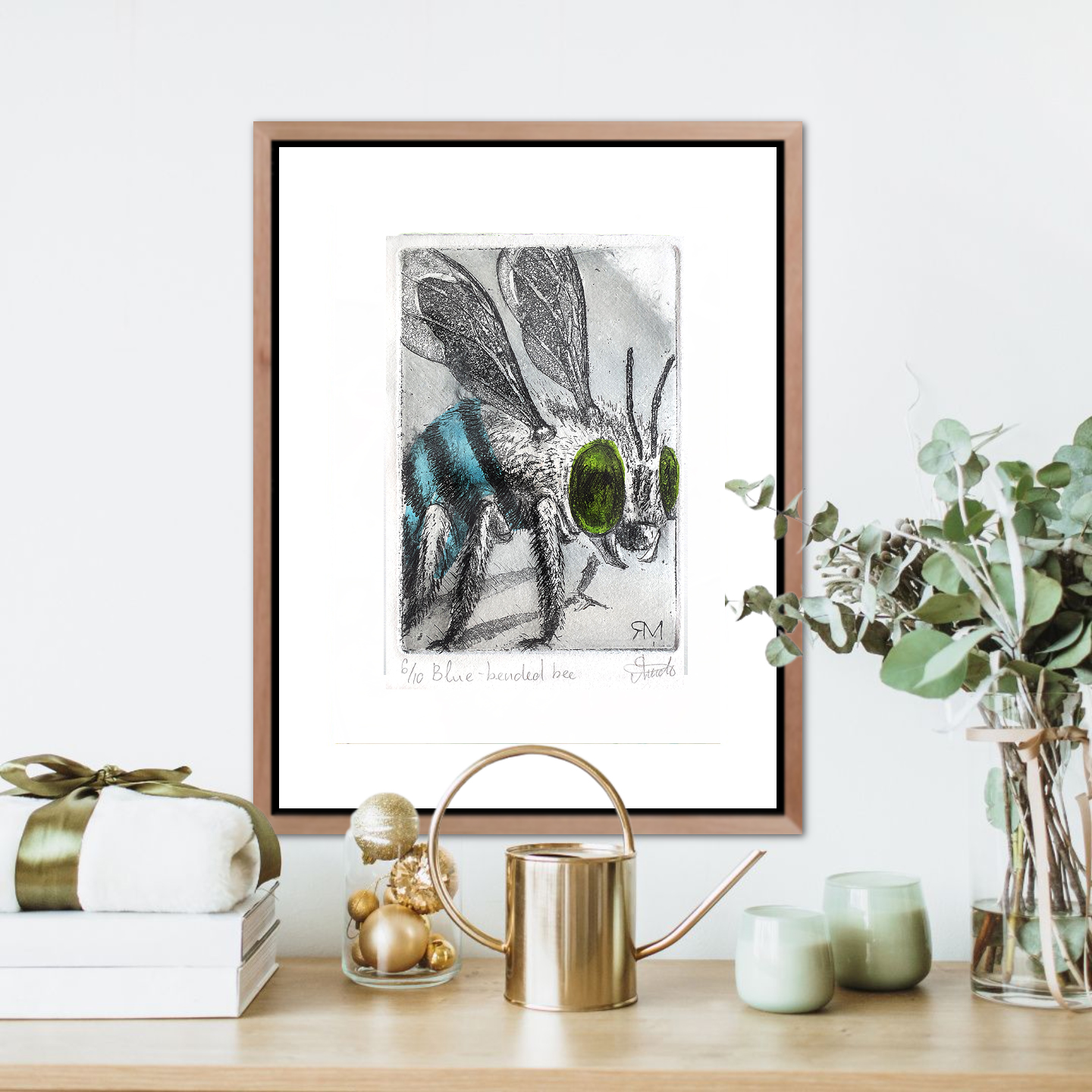 Blue-bended bee by Margarita Iakovleva – Etching. Limited edition 10.